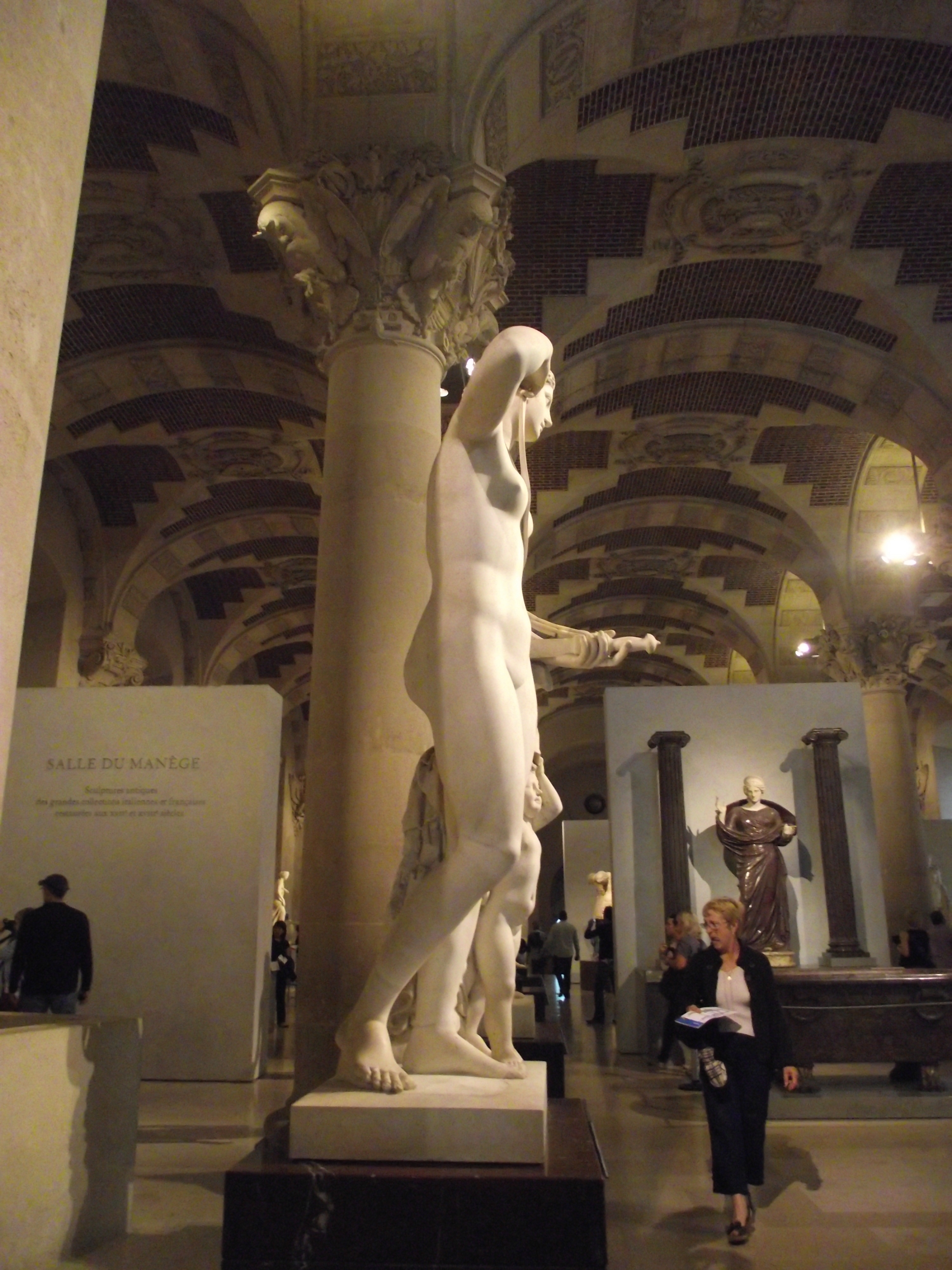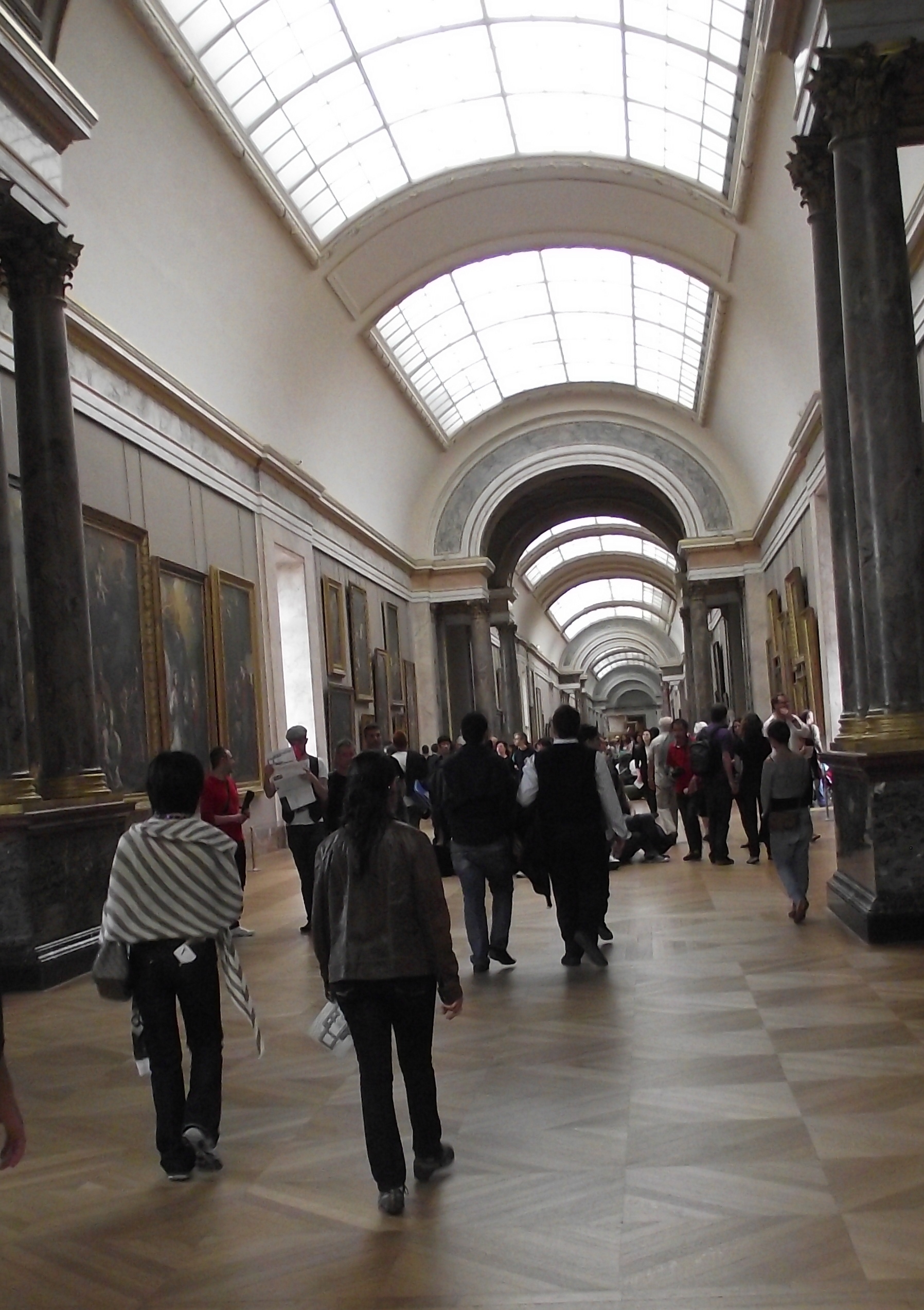 Ao entrar na Ala Denon (confira no post GuiaRápido.Louvre), onde está a Mona Lisa, você logo notará cartazes indicando a direção para encontrá-la (também tem um quiosque que vende souvenires e uns livros bem bacanas sobre o museu e suas obras). Você vai seguir as indicações (claro). Começando por uma escada que sairá em uma primeiro salão onde há várias esculturas. Fotos abaixo:
