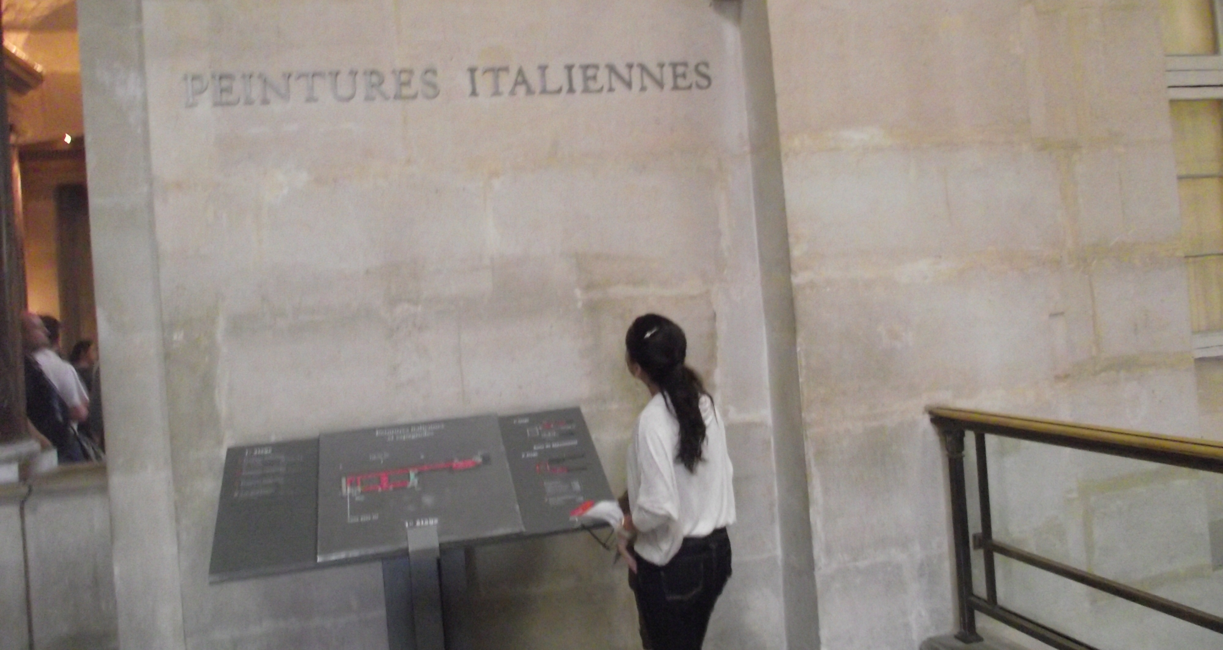 Ao chegar no topo da escada, de frente para a Vitória Alada, à sua direita há um novo corredor, cuja entrada indica peintures italiennes, começando aí a ala dos clássicos artistas italianos: