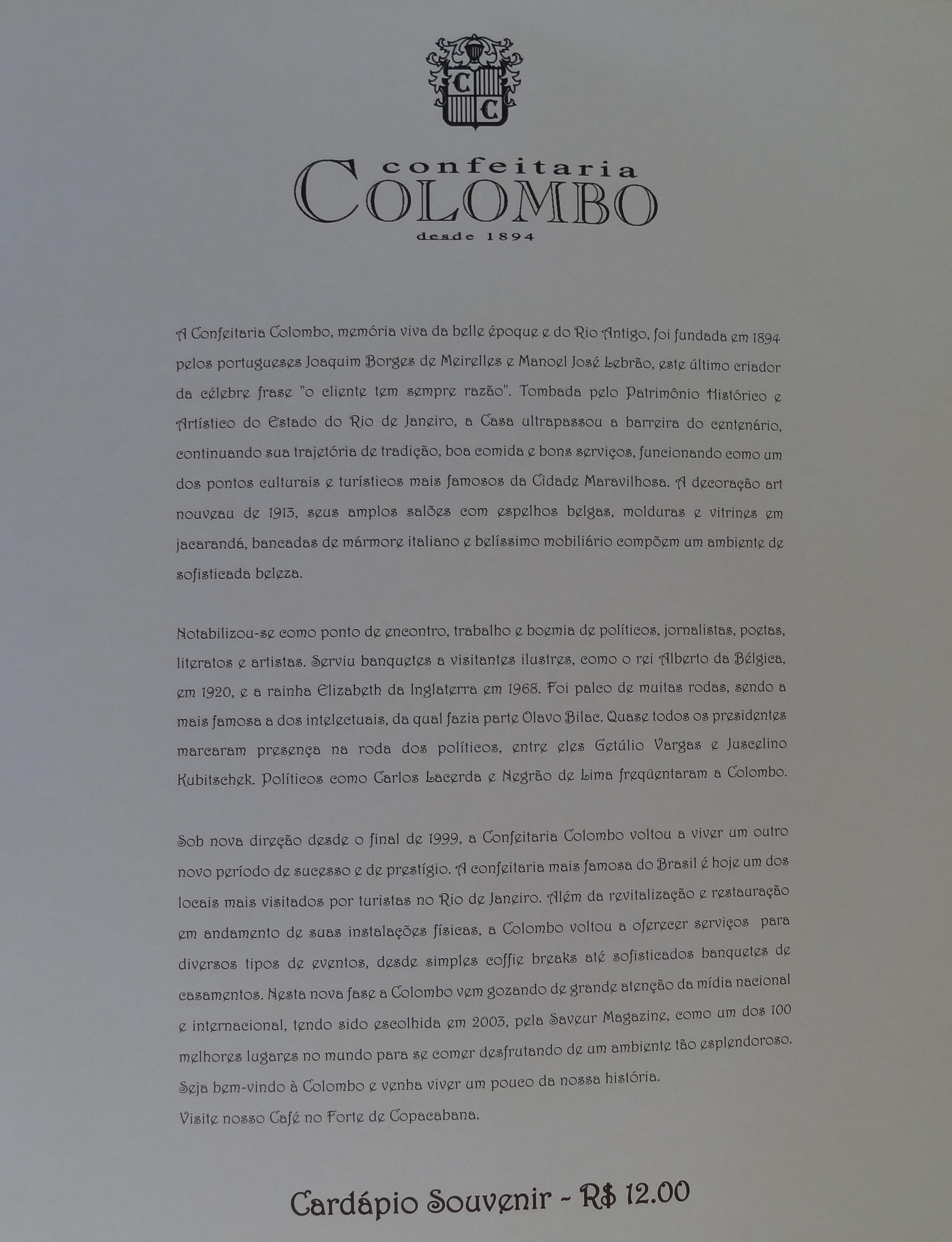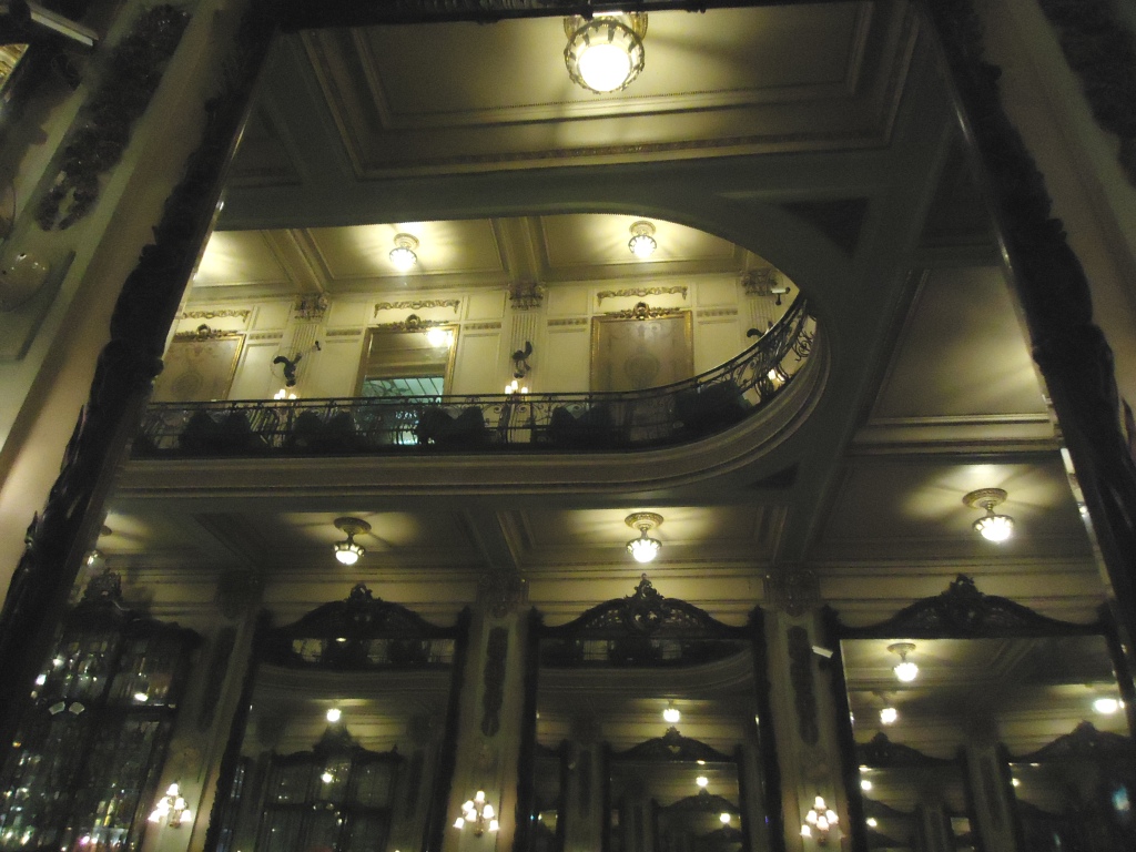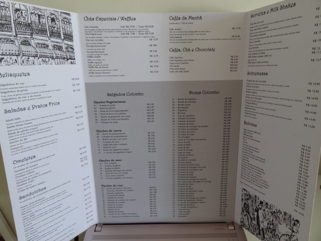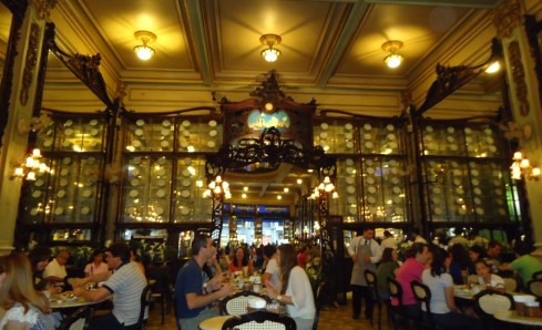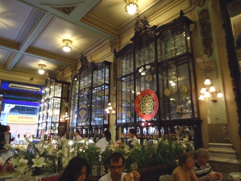 Fundada em 1894 por dois portugueses, seu salão exibe  imensos espelhos belgas e vitrines em jacarandá (li tudo no cardápio… kkkk):