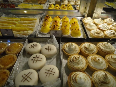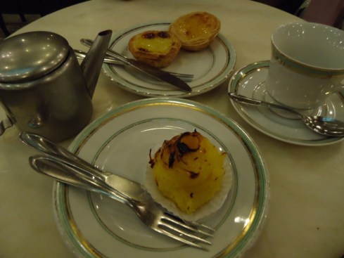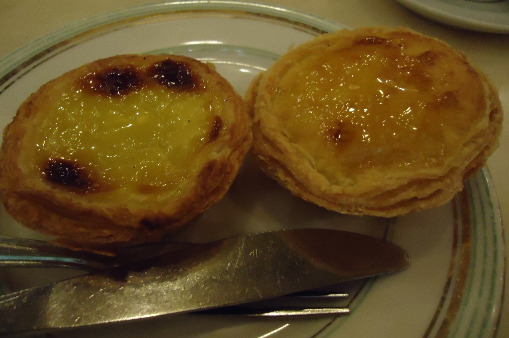 Difícil escolher o que comer. Mas, vamos lá: o Hélio pediu pastel de belém e um quindim em camisola (delícia!):