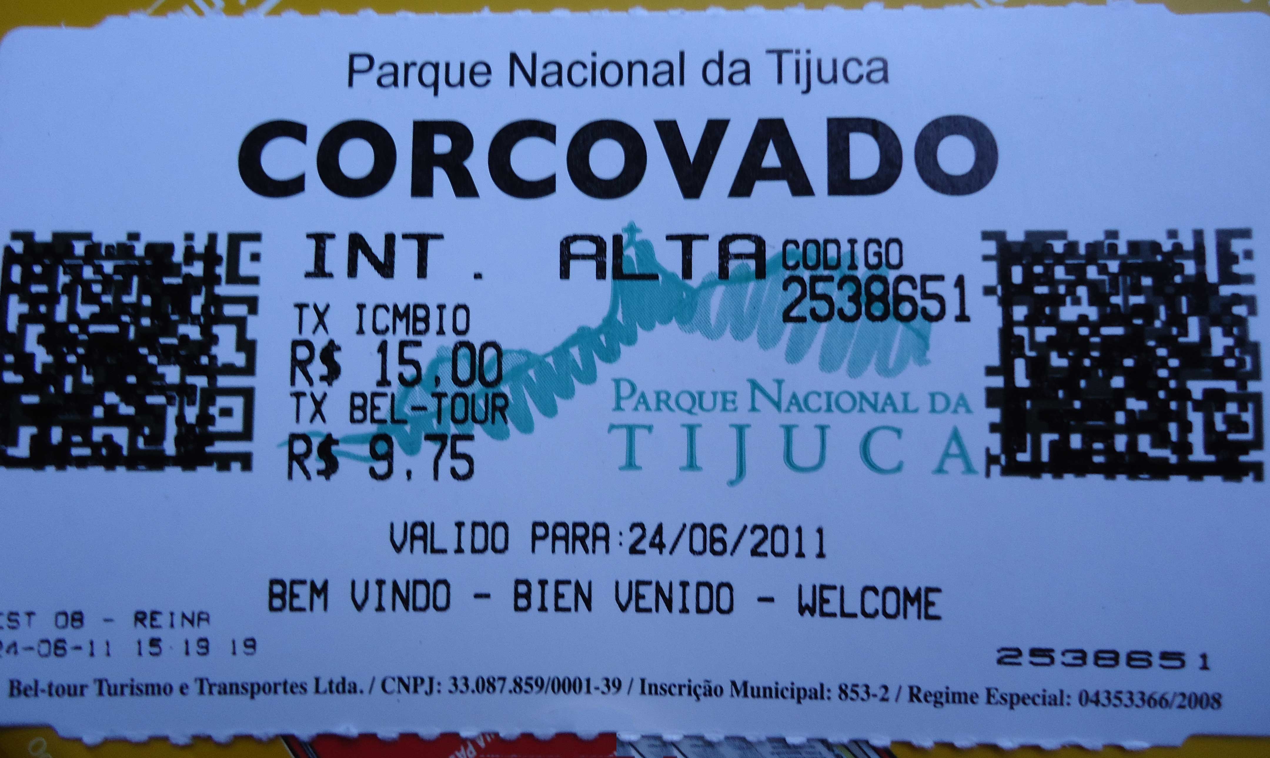 Da primeira fila nos livramos. Compramos o bilhete com cambistas. O bilhete inclui a van da Bel-Tour (subida e descida) e o acesso ao Cristo. O preço oficial seria R$ 24,75. Pagamos R$ 27,00. R$ 2,25 a mais pelo luxo de não pegar uma das filas: