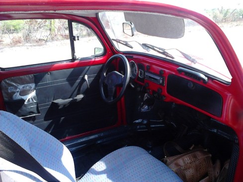 Um minuto depois ele me retorna com um dos bancos do fusca nos braços. E, dois minutos depois, ele  vem com o segundo banco. Fusca tem disso, os bancos encaixam e desencaixam, práticos e providenciais, como aqueles produtos vendidos na Polishop, ideais para churrascos, praia e filas de banco. Leve seu estofado para onde quiser e tenha sempre um lugar confortável para sentar ao seu alcance 😉