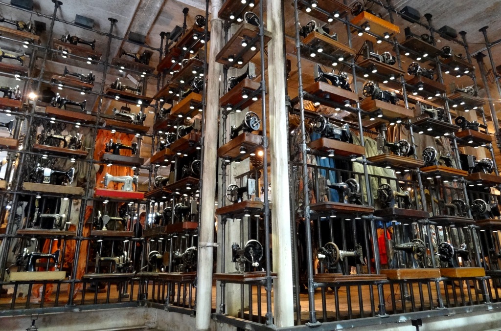 Ainda no setor de antiguidades, atravessando de um quarteirão para o outro, bem na esquina da Portobello com a Westbourne Grove, uma pausa na ALLSAINTS SPITALFIELDS, uma rede de loja de roupas, cuja decoração – paredes revestidas com máquinas de costura antigas –  já faz valer a visita: