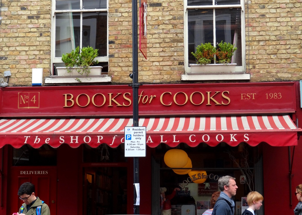 Do outro lado da rua, quase em frente à livraria, está outra livraria com uma proposta pertinente, a Books for Cooks, especializada em culinária. Além de livros apetitosos, o ambiente ainda conta com um café  e cozinha experimental. Vale xeretar 😉
