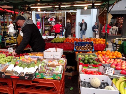 Barracas de frutas, legumes, pães… um corredor de inúmeros itens reluzentes e apetitosos.