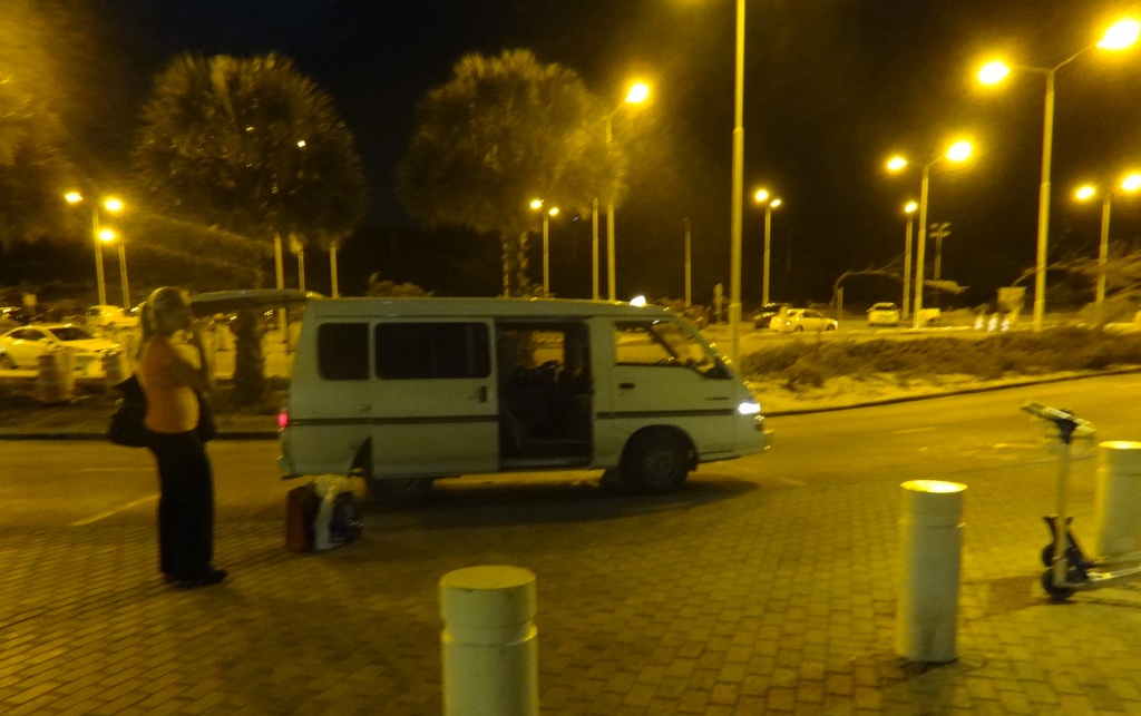 – Tão logo saímos do simpático, porém resumido, Aeroporto, nos deparamos com a primeira peculiaridade da Ilha. Ao procurarmos um táxi, notamos que ao invés de carros comuns e com viagens, digamos, individualizadas, os táxis de CURAÇAO na verdade são vans e fazem a corrida no estilo táxi-lotação. Nada mal. Naquele momento queríamos apenas chegar e na primeira vaga que surgiu, empacotamos de mala e cuia dentro da van. A corrida até nosso Hotel, em Otrobanda, custou 35 doláres.
