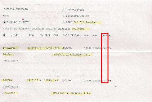 Figura 2: Vôo TAP - Salvador/Lisboa - CONCEITO PEÇA