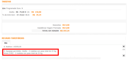 – Franquia de Bagagem