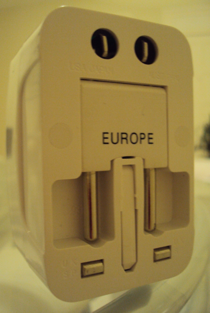 Não precisa ficar quebrando a cabeça para saber qual o tipo de tomada usada no país para onde você vai. Basta sempre levar seu adaptador na bagagem e fica tudo resolvido. Comprei o meu no Mercado Livre. É um pequeno investimento que quebra altos galhos… Vá por mim!!