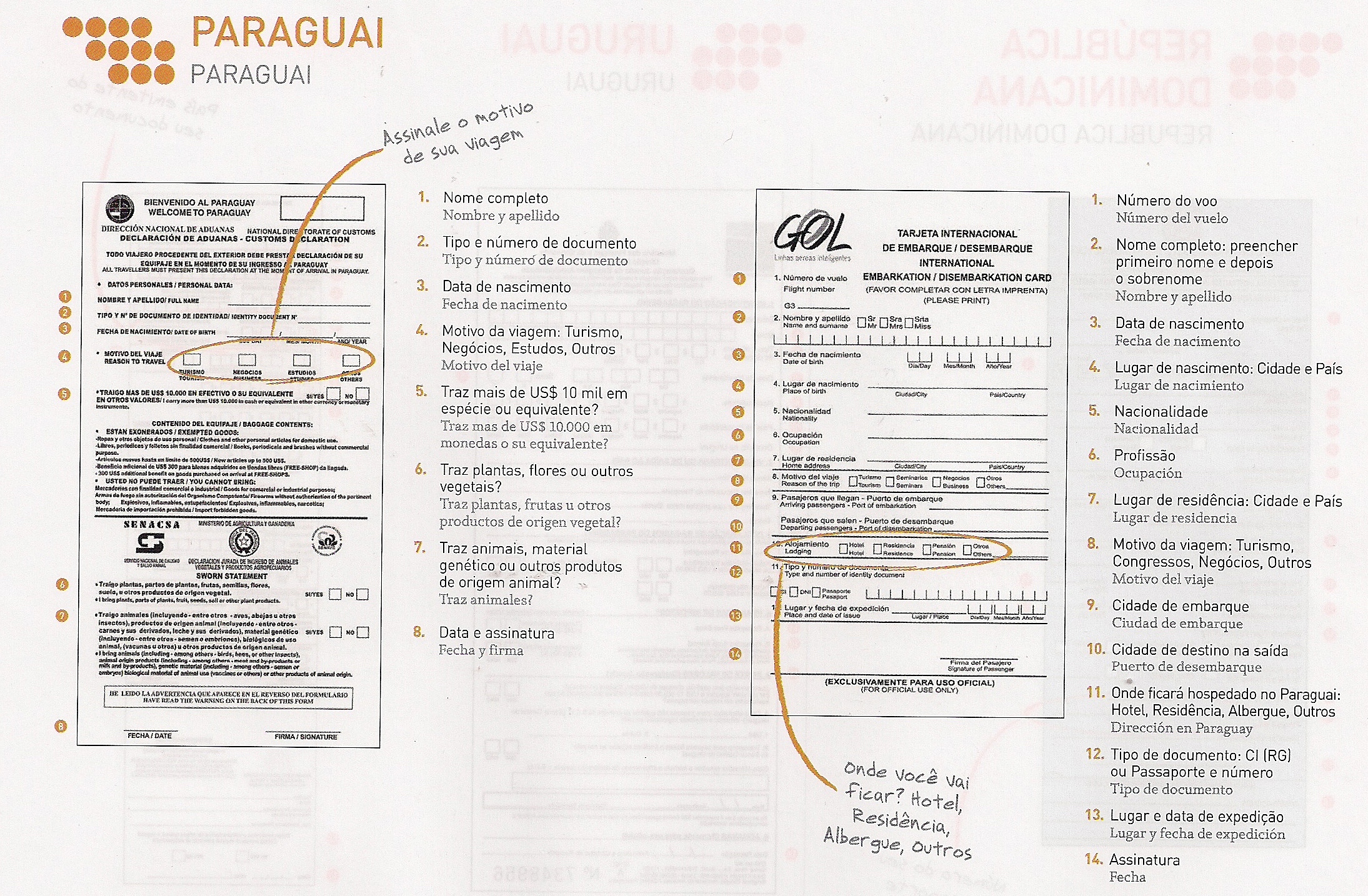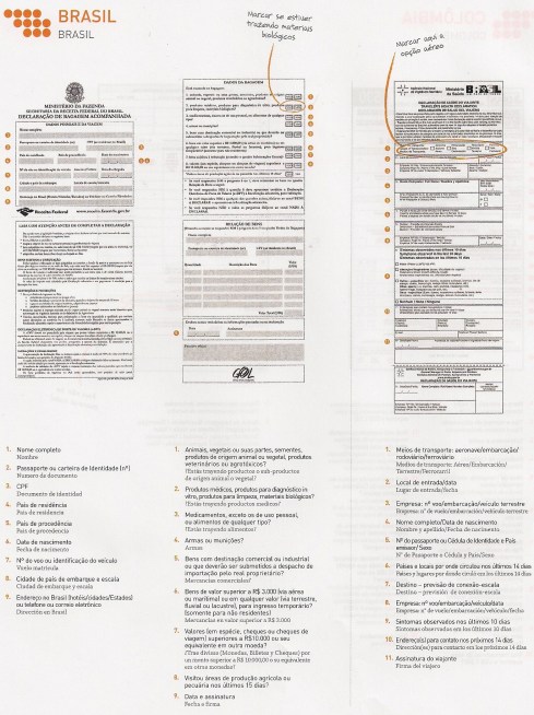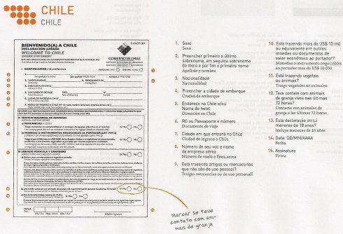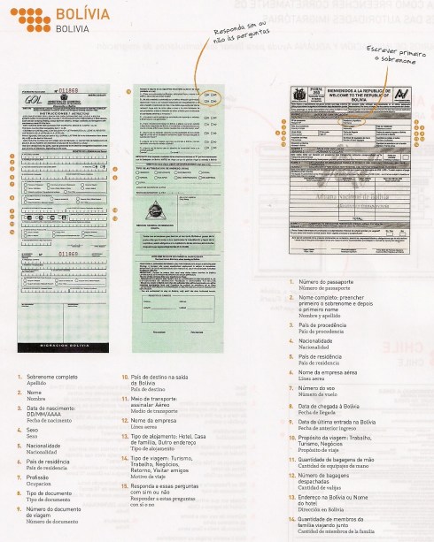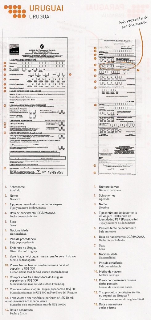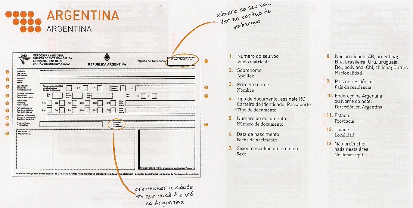 Sabe aqueles papeizinhos que os comissários de bordo começam a distribuir durante o voo, no auge do seu esforço psicológico para tentar se convencer de que sua poltrona é confortável e algumas horas nelas serão as mais agradáveis da sua vida? E quando você olha e se depara com aquelas letras pequenininhas, se pergunta: ãh? Então… Quem já deu uma escapada para algum hermano da América sabe do que estou falando. E quem ainda não foi, mas certamente vai (aproveitando nosso momento econômico de topo da roda gigante… kkkk), também vai se deparar com eles.
