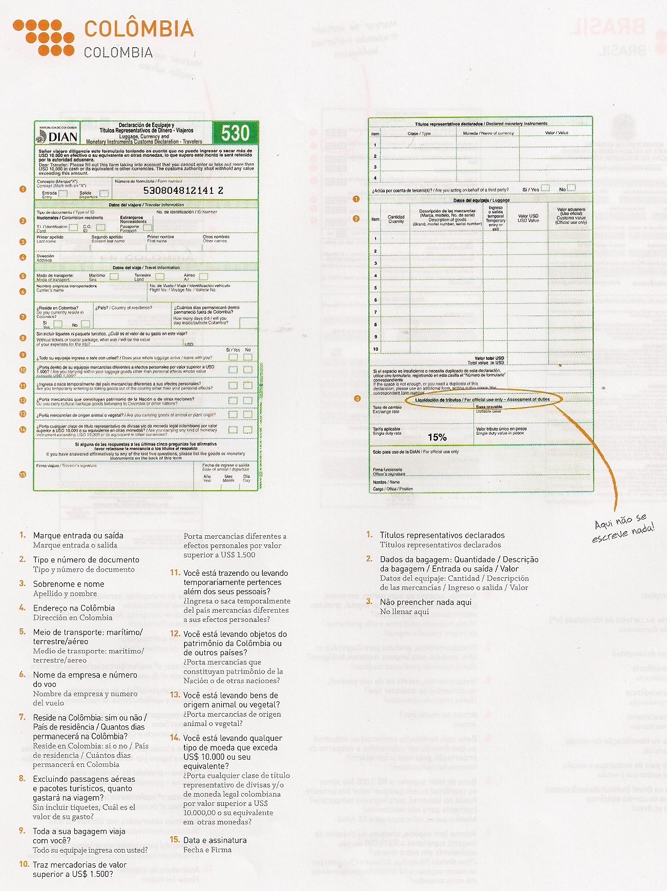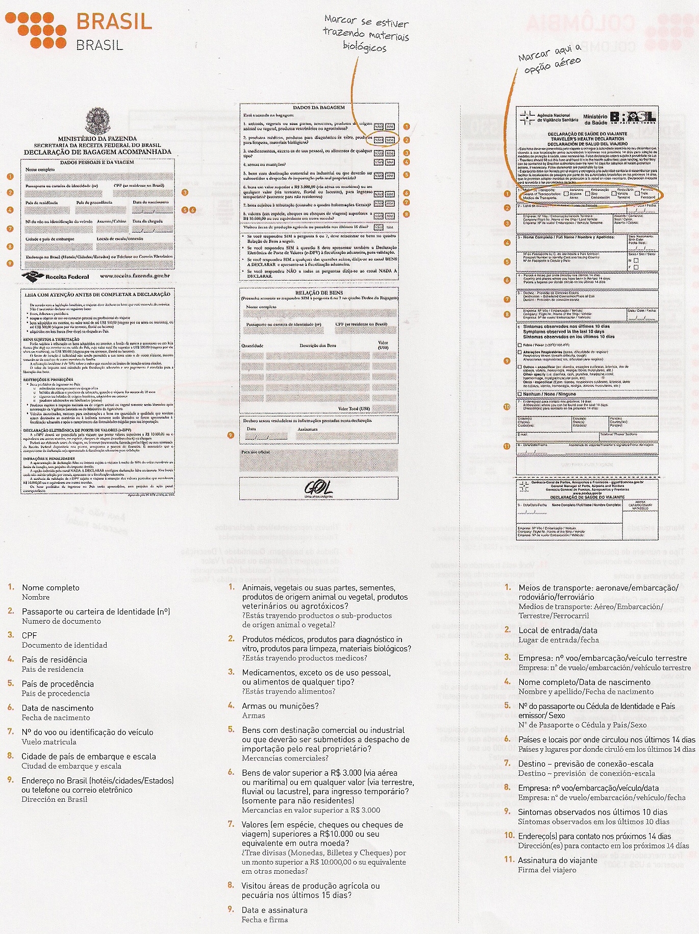 FORMULÁRIOS DE IMIGRAÇÃO e ALFÂNDEGA