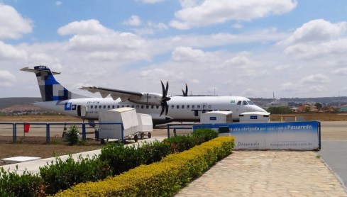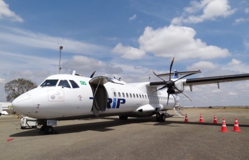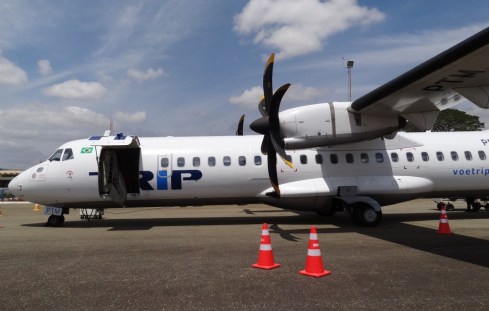 A aeronave que viajamos foi um ATR 72-500. Pequena, tem capacidade para 68 passageiros: