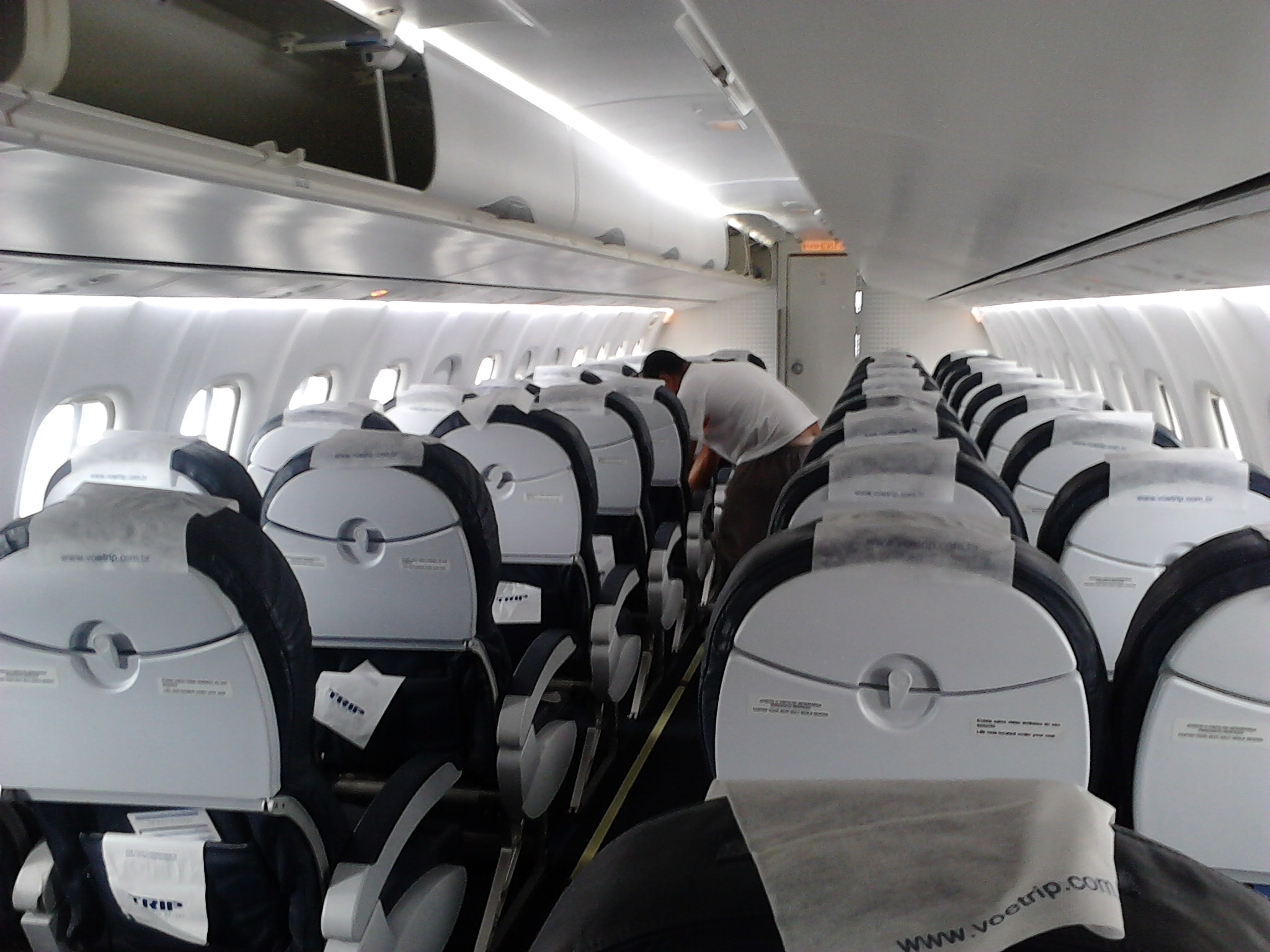 Como se trata de uma aeronave de pequeno porte (dimensão interna de 1,91m de altura), os compartimentos de bagagem têm pouca altura e profundidade, razão pela qual minha pequena mala  não coube nos referidos compartimentos e teve que seguir nos meus pés, reduzindo ainda mais o já curto espaço para esticar as pernas. Outra implicação é que a aeronave não se encaixa nos fingers (pontes de embarque que fazem a ligação entre o portão de embarque e a aeronave) e o acesso é diferenciado nos aeroportos que utilizam esse sistema (que não é o caso de Aracaju, tampouco de Conquista).