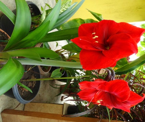 Destaque para a Açucena (Amaryllis)… Liiiinda demais! Cheia de vigor, vestida no seu vermelho radiante: