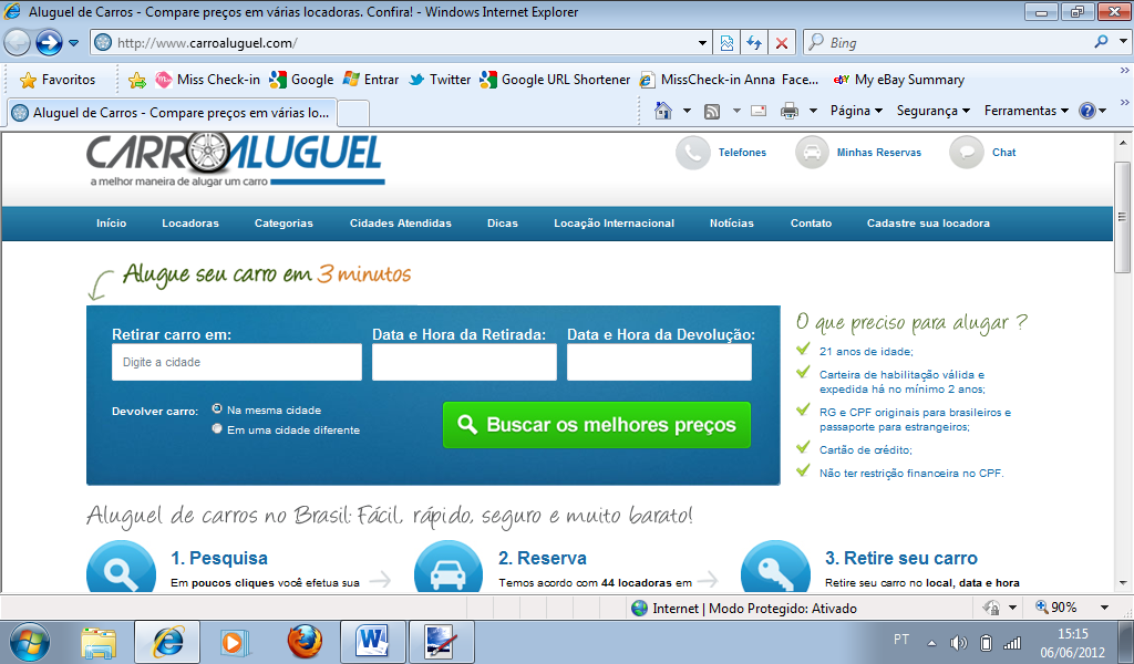 Viu como é fácil alugar o carro pela internet? Com alguns poucos passos e minutos, você já reservará o seu carro e ficará tranquilo até a data da viagem, sabendo que o veículo desejado estará lhe esperando na cidade de destino.