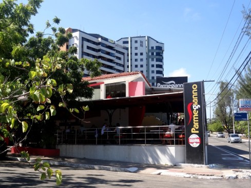 O Posto fica bem na avenida e divide esquina com outro restaurante, o Parmegianno: