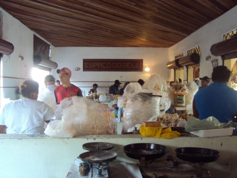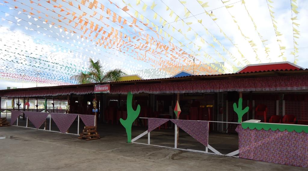 Além deles, na lateral esquerda da praça de eventos, ainda rola uma feirinha de comidas típicas e artesanato, onde também é possível sentar e comer uma típica torta de macaxeira: