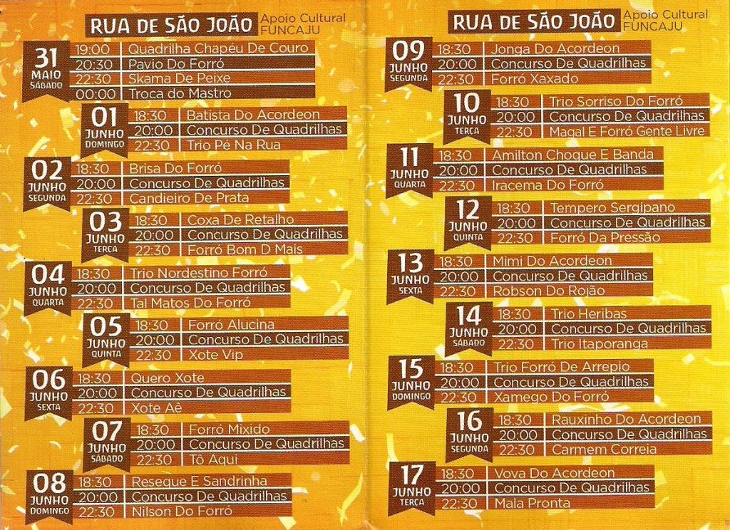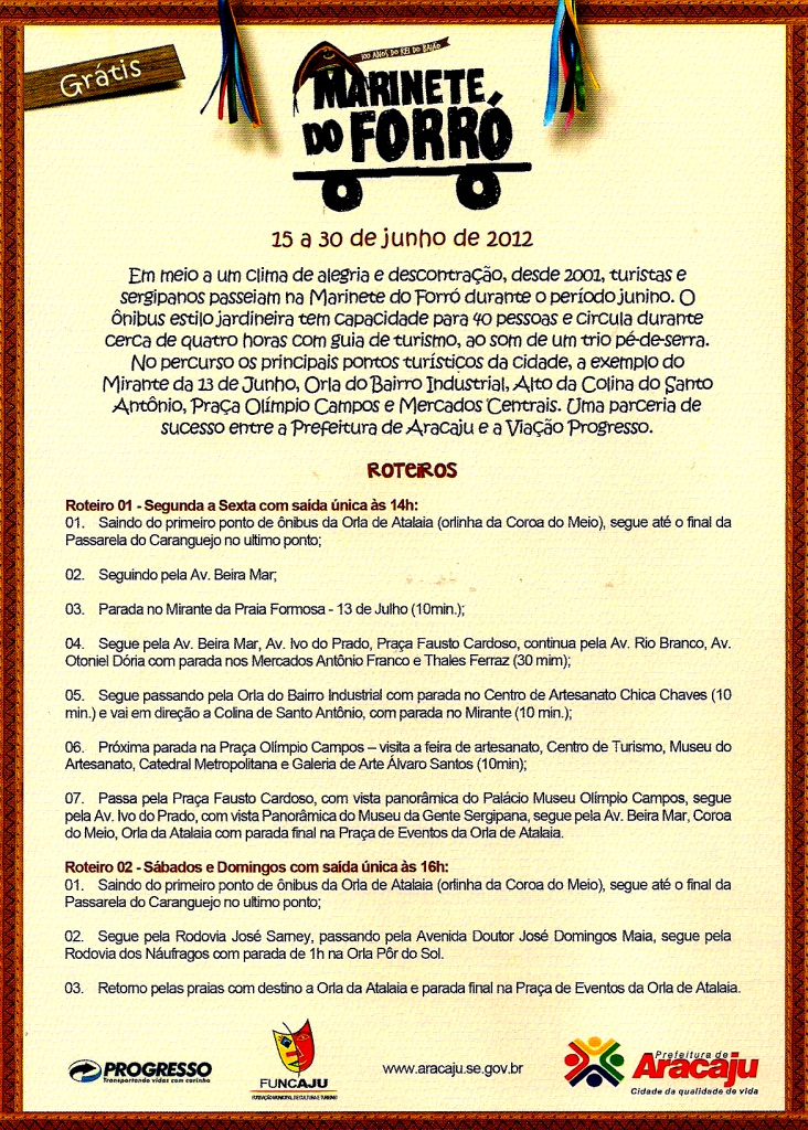 Se tem uma coisa de que Aracaju realmente se orgulha é de ser uma capital forrozeira e, no mês de junho, por aqui, tudo é motivo pra “forrozar”. Tem forró nos quatro cantos da cidade, até porque, a zabumba e o baião cortam a cidade pra lá e pra cá… De “buzu” ou de barquinho… É só escolher! 😀