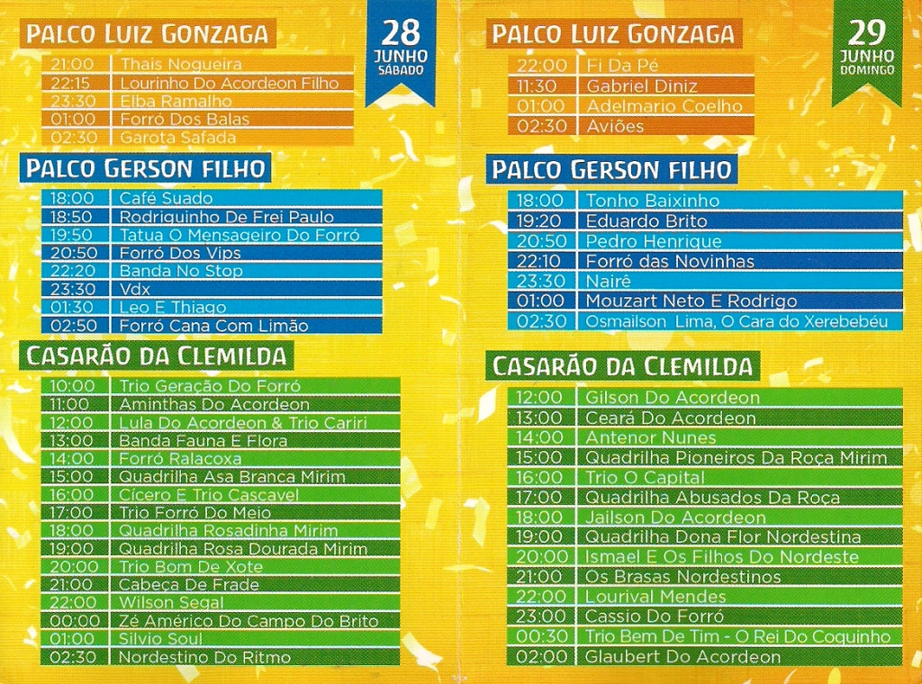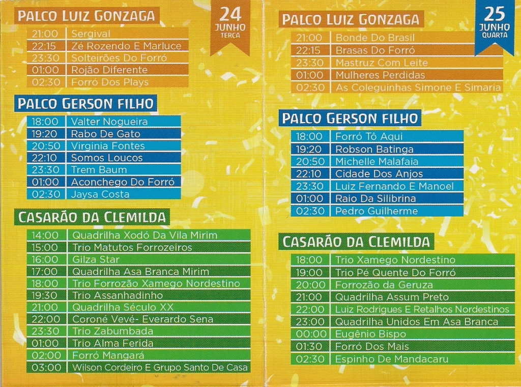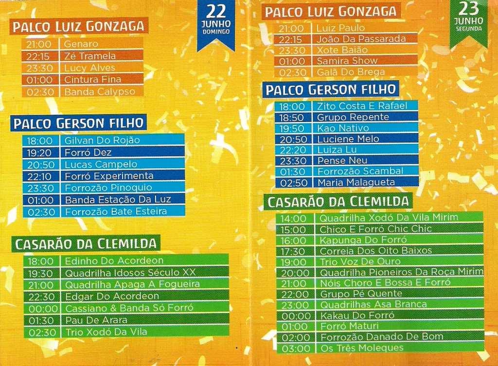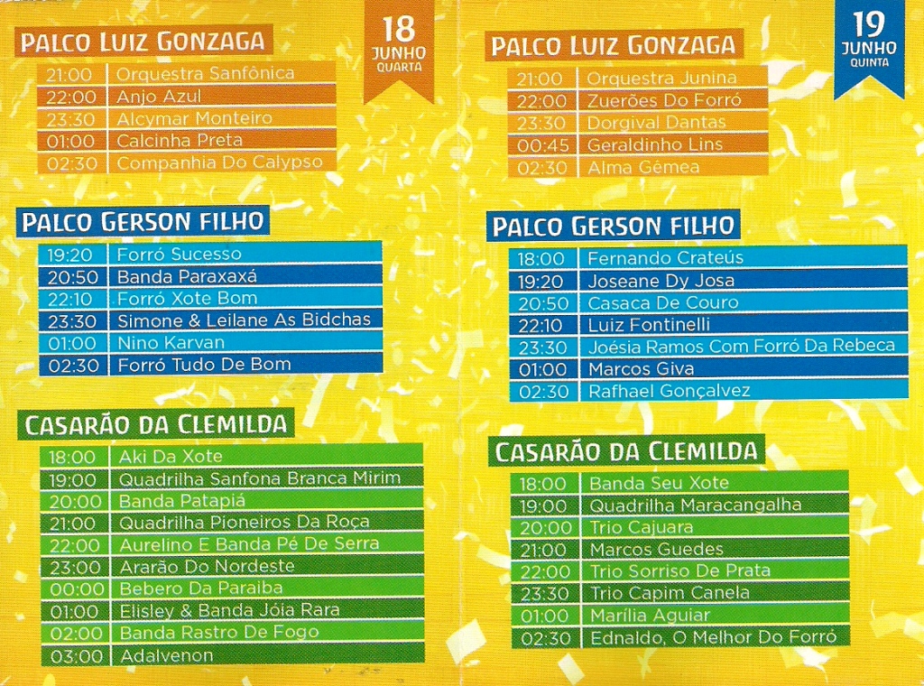 Programação do Arraiá – 2013: