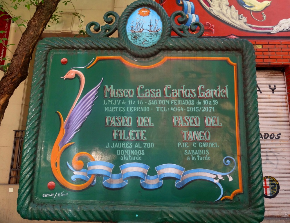 Ali, Gardel viveu, desde sua chegada da França, sua terra natal, aos dois anos de idade, e cresceu, brincando pelas ruas e, mais tarde, cantando e compondo pelos bares locais, o que lhe rendeu o título de “El Morocho del Abasto” (o moreno do Abasto… Pesquei nas placas turísticas espalhadas pelo bairro… ehehe).