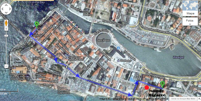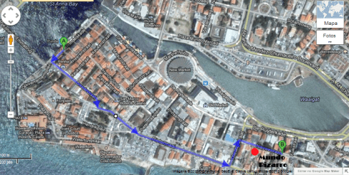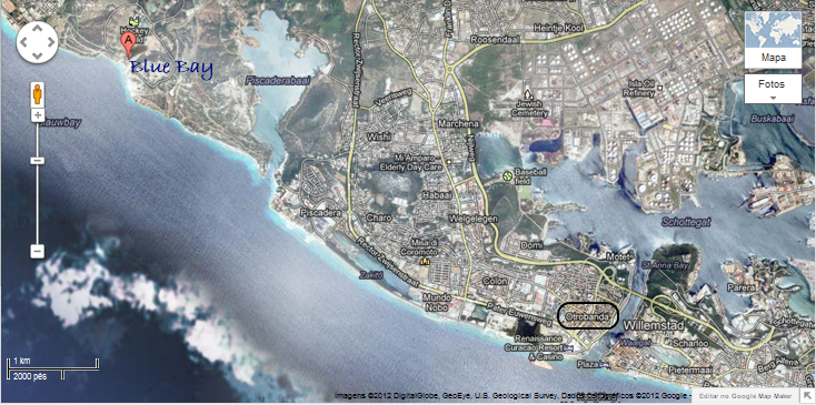 Na verdade, esqueça o mapa. A instrução, acima dele, é que realmente nos permitiu chegar. Saindo de Palm Beach, siga pela Route 4A, sentido Piedra Plat/Paradera. Siga nesta via e, rode, rode e rode até encontrar a Pizza Hut, em Piedra Plat: