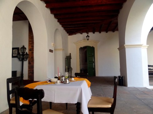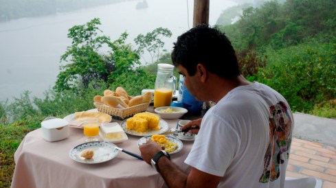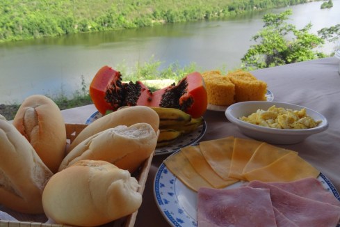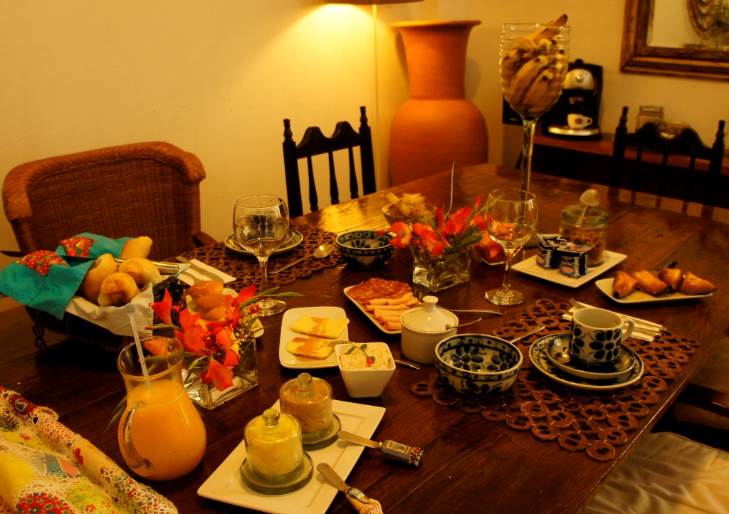 Na mesma sala de jantar é servido o café da manhã. Informamos o horário que pretendíamos tomar o café e, no horário combinado, uma mesa farta nos aguardava, com frutas, queijos, pasta de atum e queijo branco (divina), abóbora caramelizada, iogurte, granola e por aí vai. Bonita e gostosa, como a vida deve ser 😉