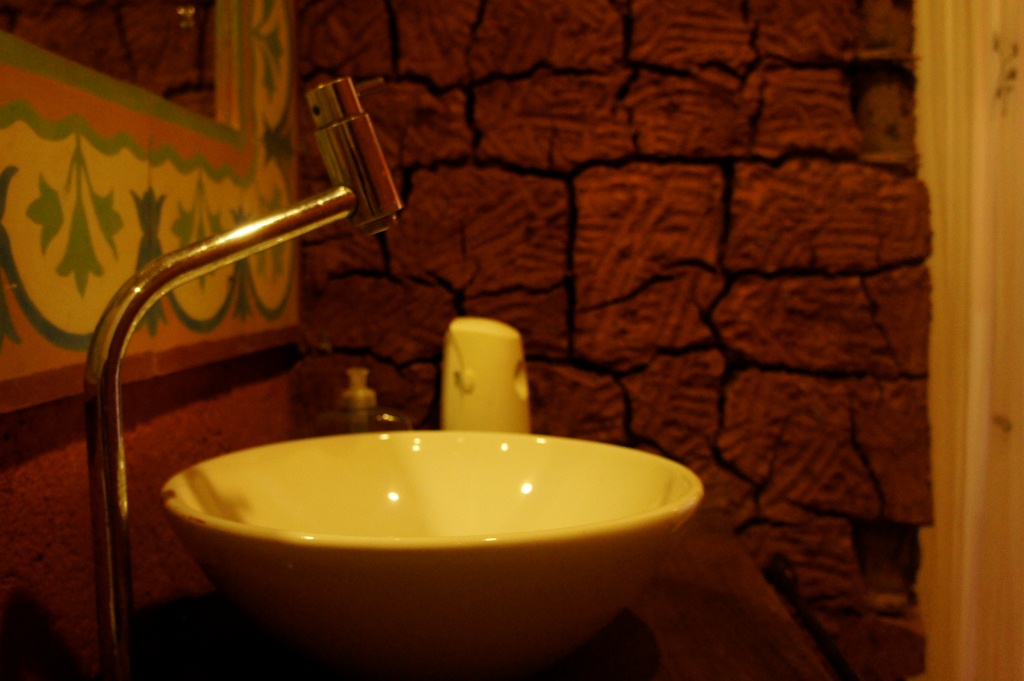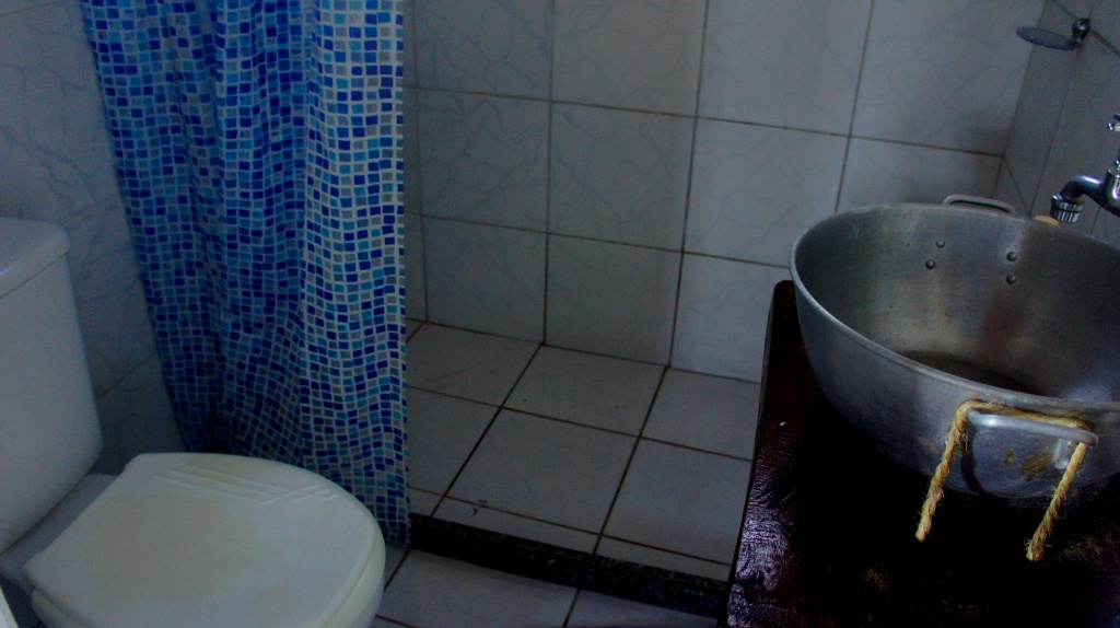 Já neste cômodo, devidamente acomodados, fomos recebidos por uma cama romântica e um banheiro rústico, que arrematam o cenário de obra literária do século XIX (quebrado apenas pela presença da TV LCD com PAY TV… inconveniências da modernidade ihihihih).