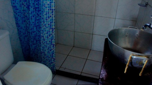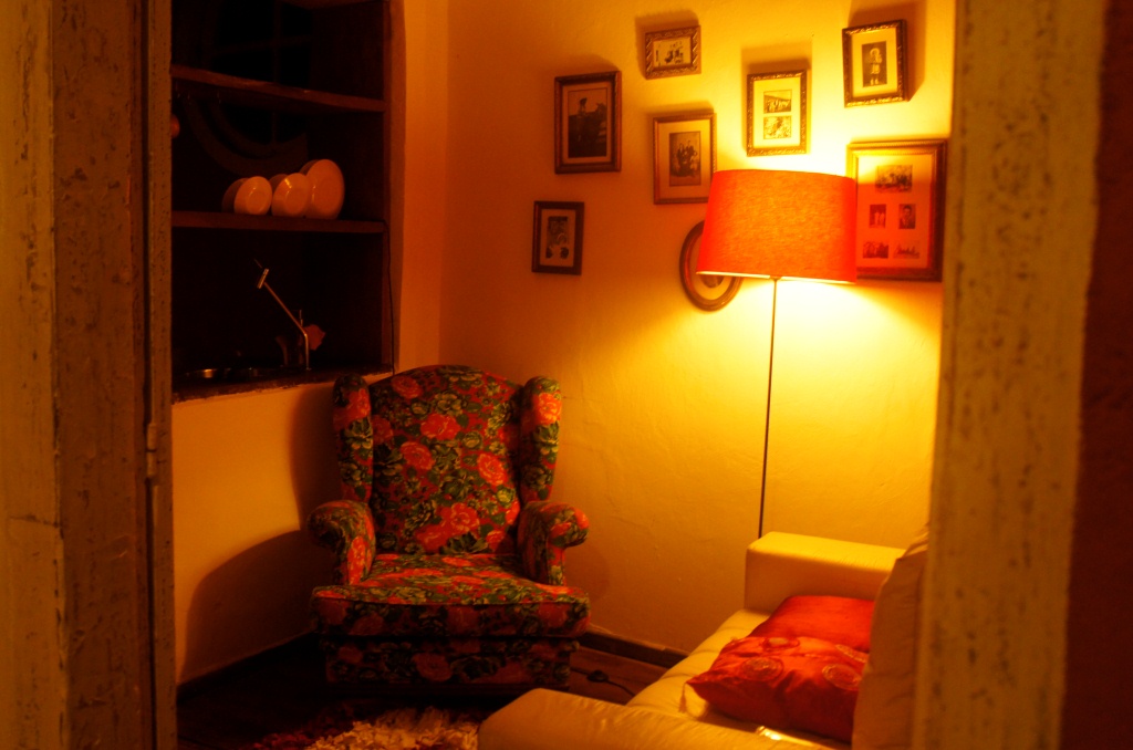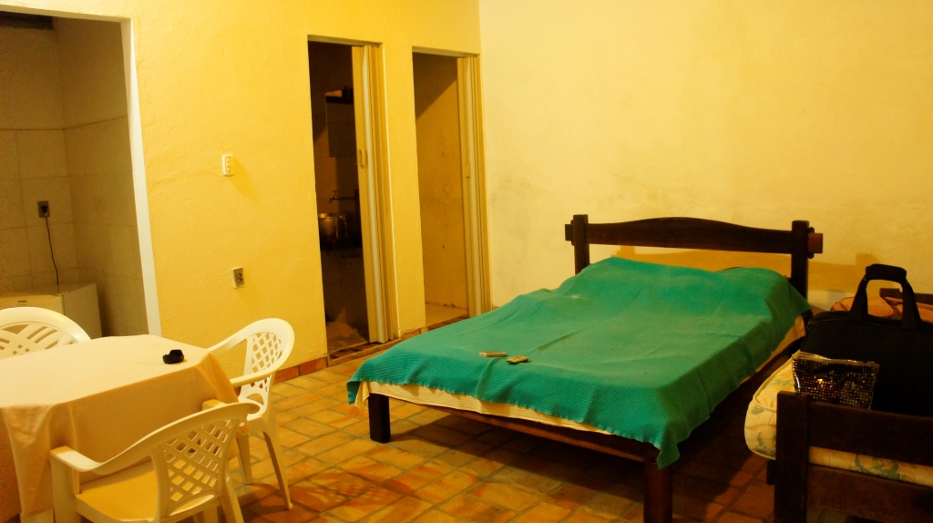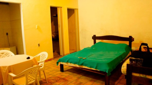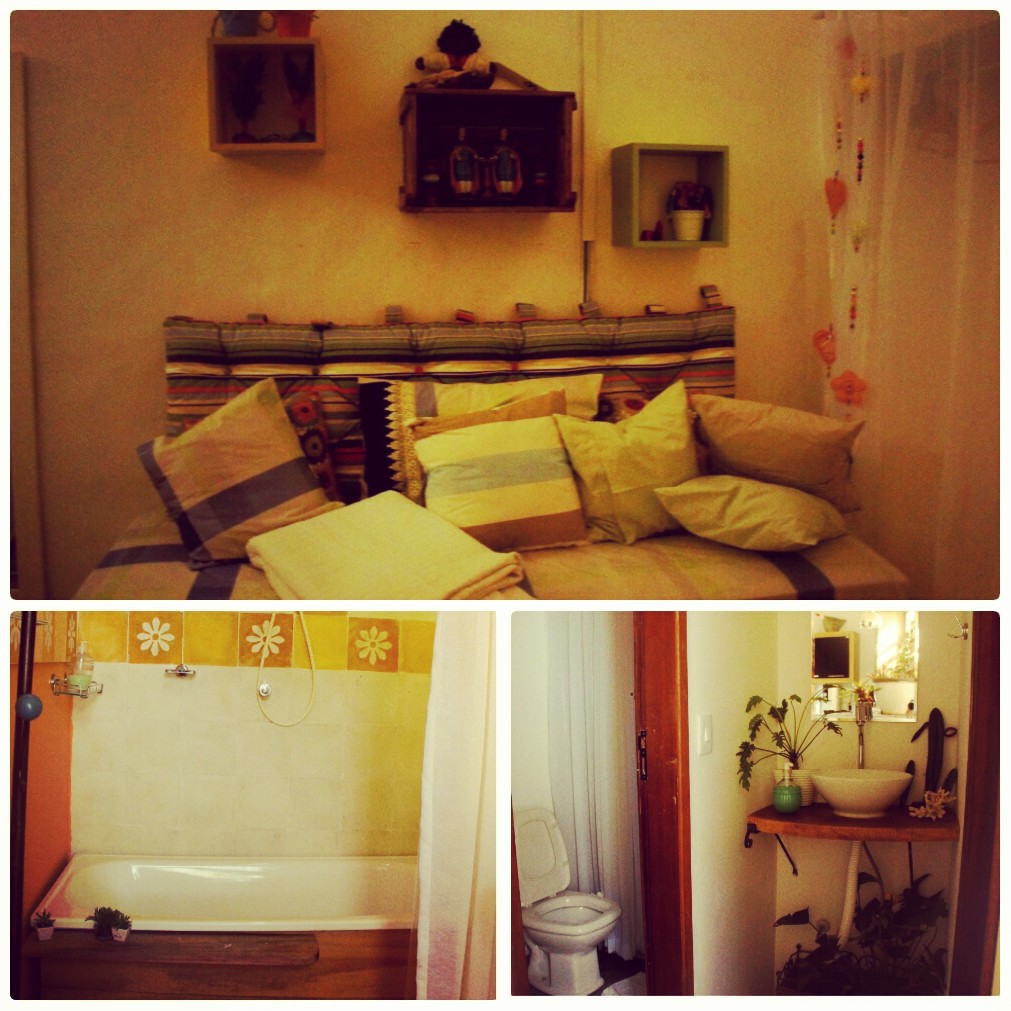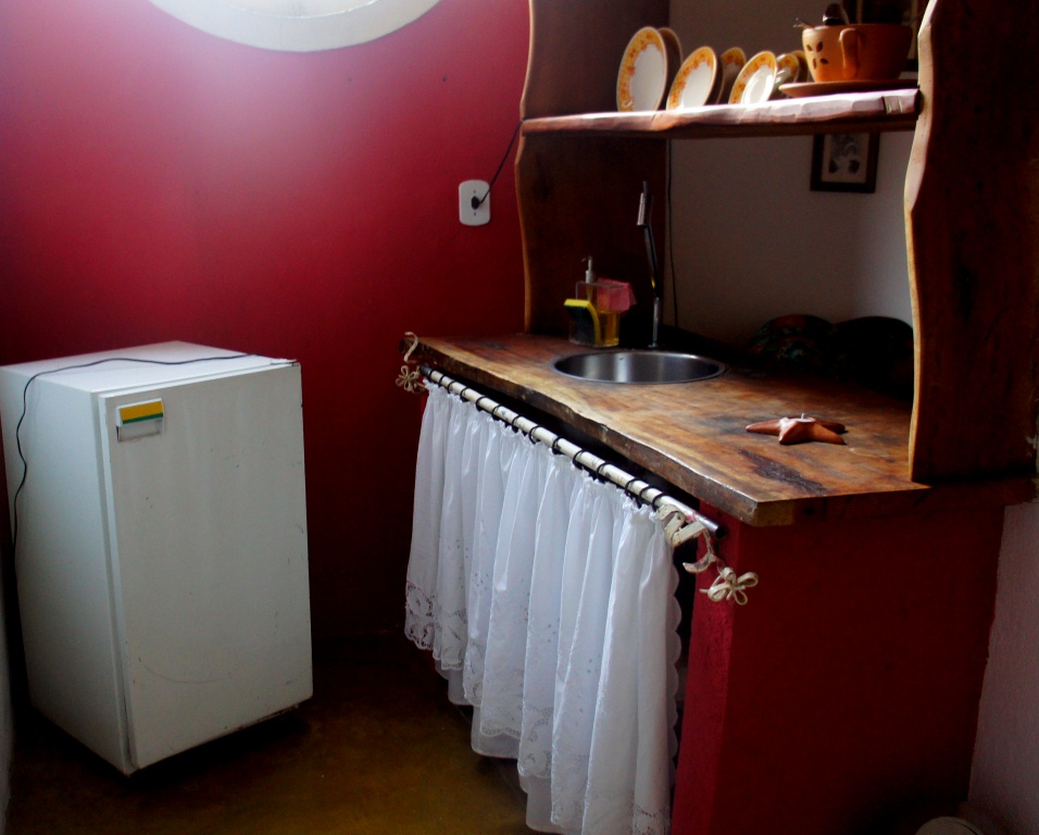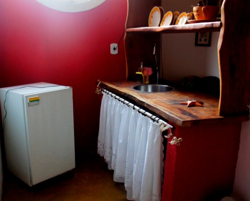 Por R$195,00 (valor em julho de 2013 para uma diária em quarto duplo), ficamos instalados na suíte vermelha, a melhor da casa. O quarto conta com uma minicozinha e alguns utensílios para uma refeição de improviso, conjugado com uma charmosa antessala que fazem a prévia para o “dormitório”.