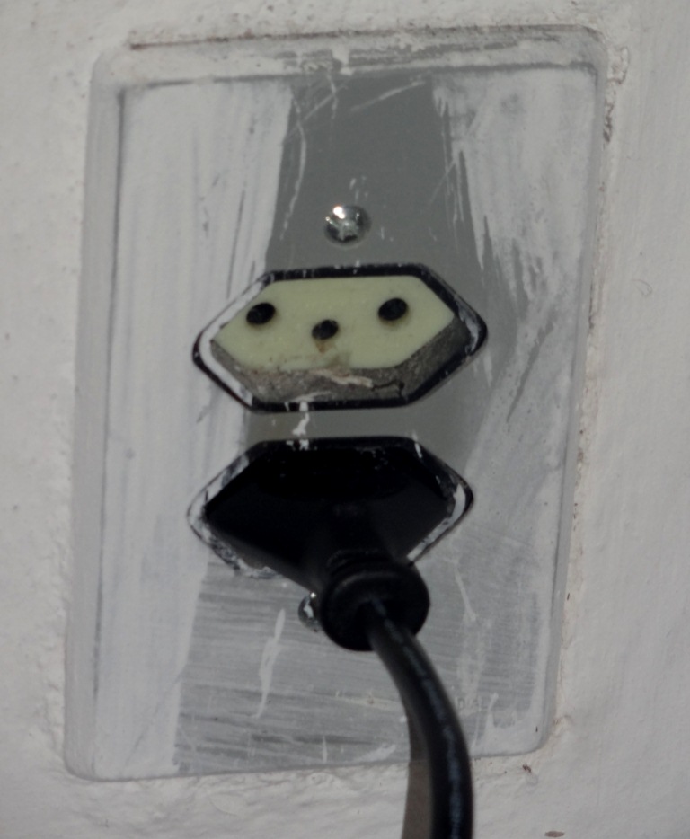 – As tomadas no novo padrão (três pinos redondos), 110v.