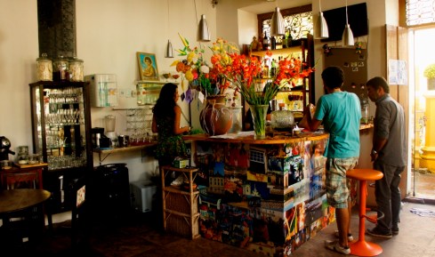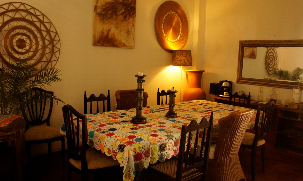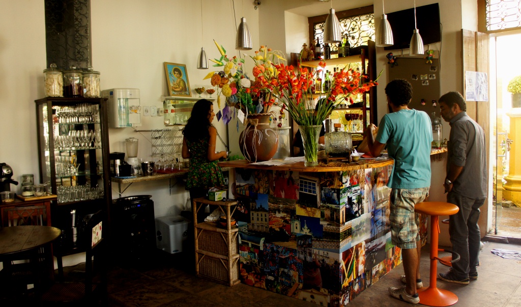 Para tanto, no térreo, funciona um agradável e colorido Bistrô que serve pratos da culinária local – sempre com um toque gourmet – em meio a uma boutique de artesanato, com peças produzidas na região do Recôncavo Baiano.