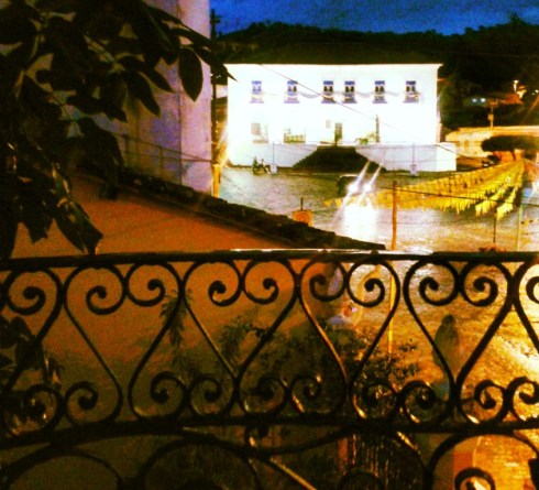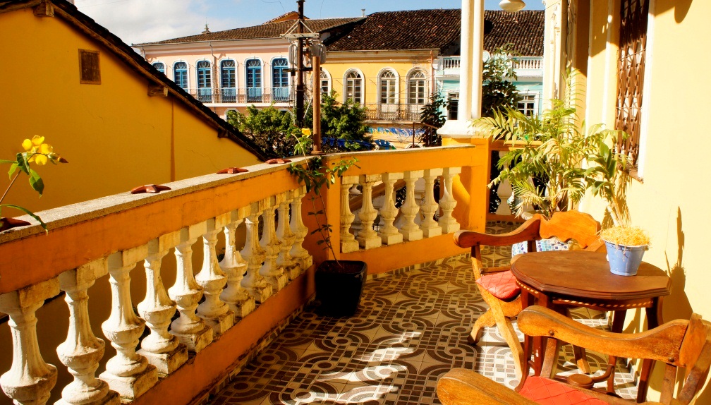 A vista das janelas do quarto retoma a viagem no tempo, no desenho dos prédios seculares de Cachoeira: