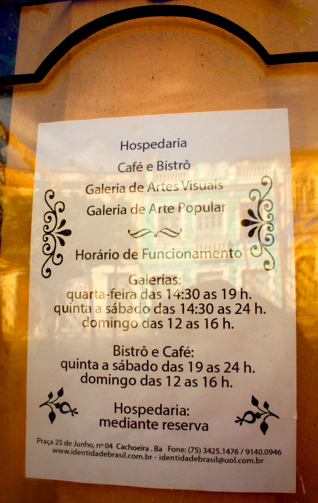 Endereço – Identidade Brasil – Rua 25 de Junho, nº 04, Cachoeira/BA. Resumindo: praticamente no Largo da Aclamação, na Rua que liga esse largo, onde está a Antiga Cadeia, à Praça da Independência, já às margens do Rio Paraguaçu.