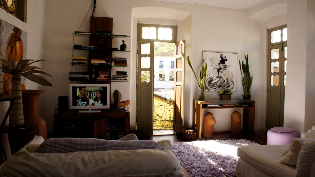 Pra finalizar, basta dizer que todo o casarão fica a nosso dispor. Sua sala ampla de janelas generosas: