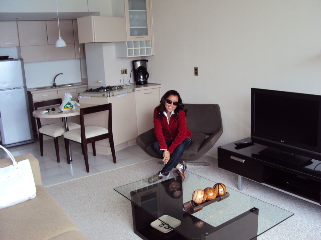 – Nosso apartamento era um quarto e sala e importante frisar que eles não funcionam como apart hotel. O apartamento é todo mobiliado. Tem fogão, geladeira, televisão, além de pratos, talheres e copos. Mas não tem serviço de quarto. Não havia toalhas e nem lençóis extras, apenas os que estavam na cama, sendo que, caso precise trocá-los, deverá levar os seus. Também não tinha papel higiênico nem itens como água ou refrigerantes. Uma vez em San Alfonso, você vai precisar se preocupar com esses detalhes.