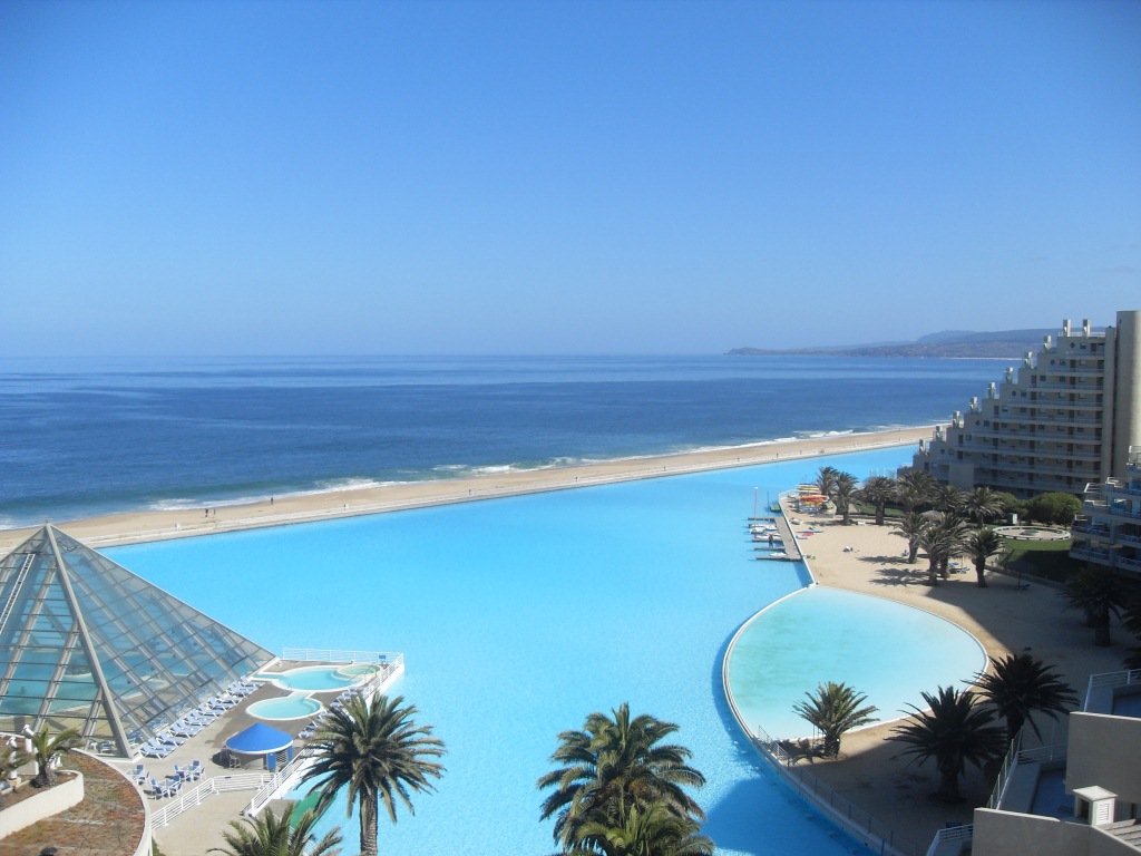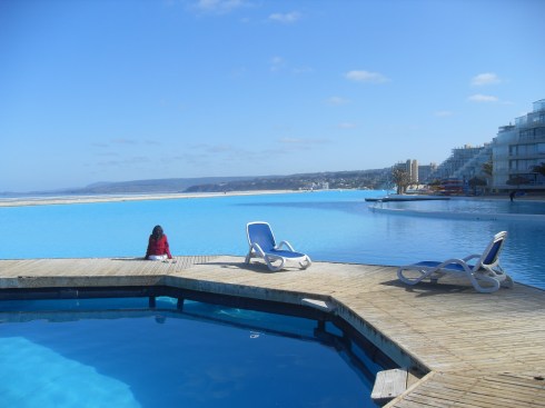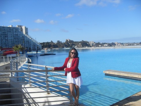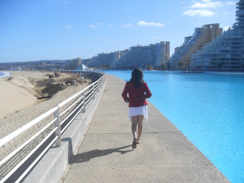 Anos depois, chegou o momento de ir em busca do meu destino azulado. Em meio aos planos e pesquisas de viagem (em um tempo em que ainda não havia – para mim – instagram, nem Facebook, tampouco conexão com amigos blogueiros de viagem), as respostas foram surgindo aos poucos. Descobri que minha foto, tipo ‘UP‘, tratava-se da maior piscina do mundo, com cerca de 1 km de extensão, localizada no litoral do Chile, em um complexo imobiliário chamado SAN ALFONSO DEL MAR (hoje todo mundo sabe disso. Na época, nem tanto).