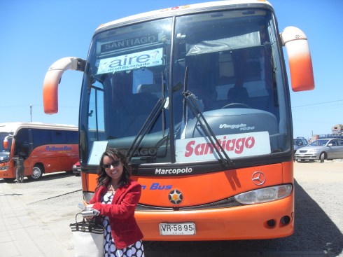 De Algarrobo fomos para Santiago. Na porta do condomínio pegamos um táxi lotação para a rodoviária local, onde então pegamos um ônibus para Santiago. Mais uma vez não anotei o valor, mas foi barato (bem mais barato que o translado).
