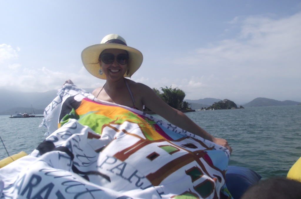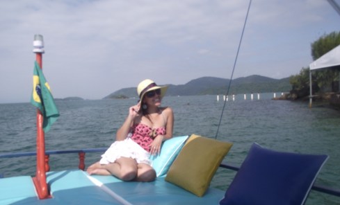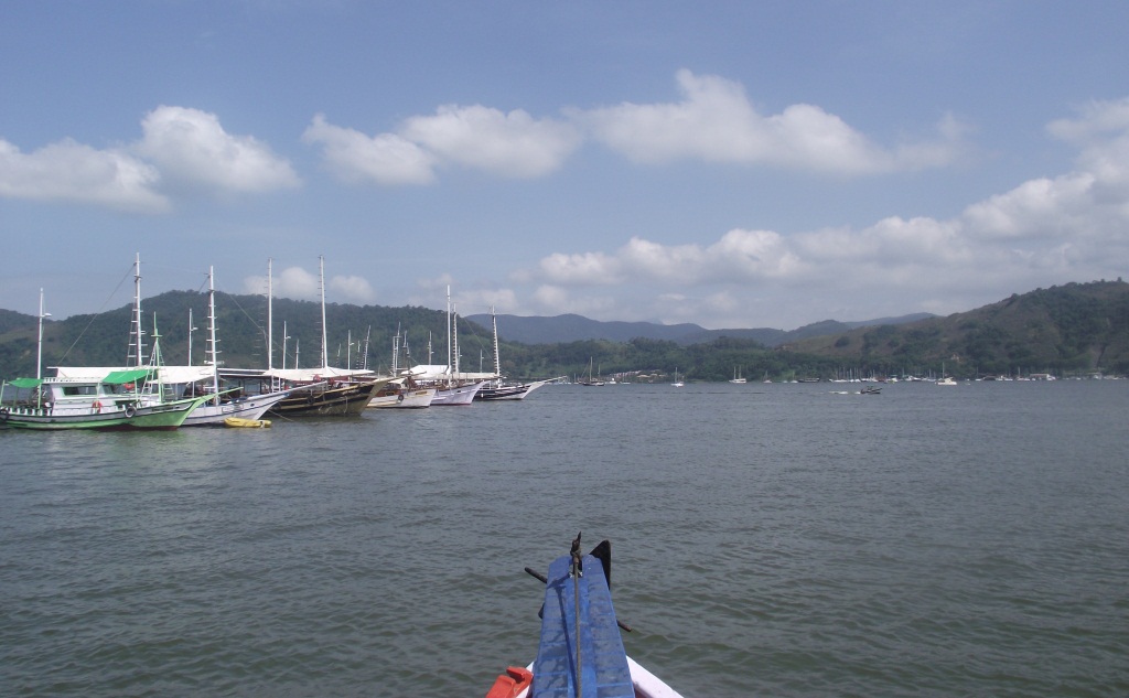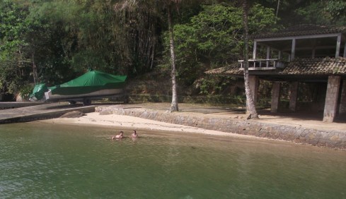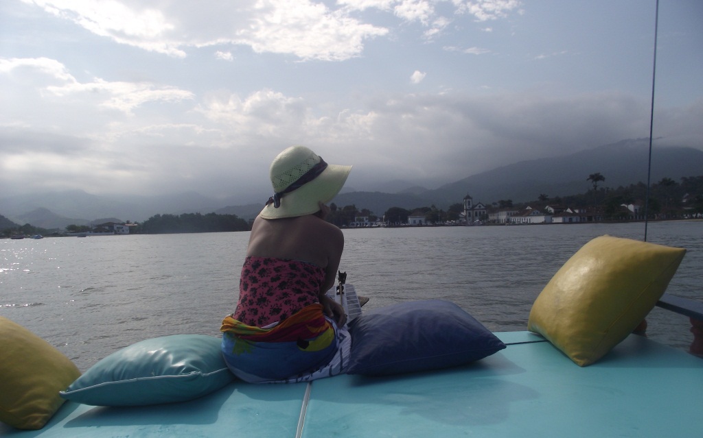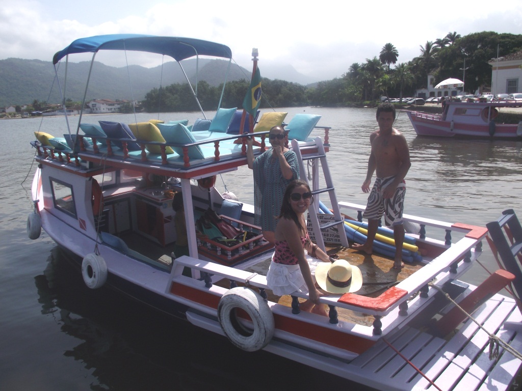 Encontramos o barco do Paulo. Ele, um caiçara (=paratiense) muito simpático, foi nosso barqueiro exclusivo. Conseguimos que ele levasse apenas nós três no seu barco, cobrando R$ 20 por pessoa para um passeio de uma hora ( acabou durando mais um pouquinho… rs):