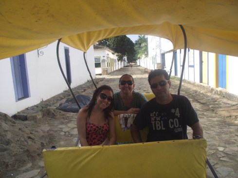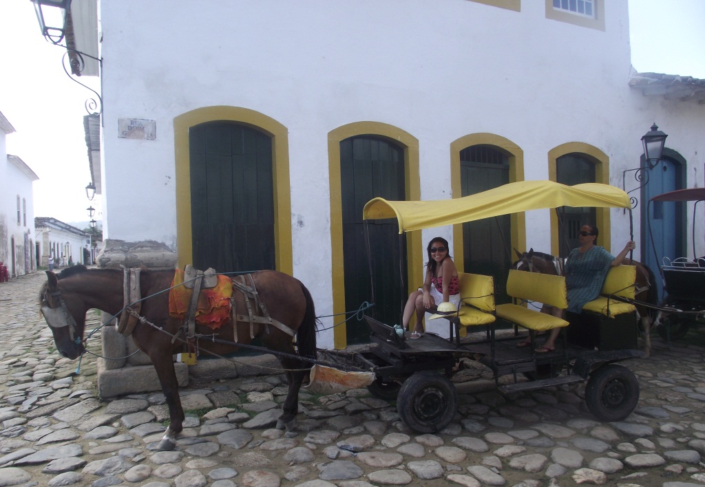E… Saindo do barco, fomos abordados pelo Tiago e por seu companheiro de trabalho, o Soldado (o tranquilo cavalo que puxava a charrete). A proposta era fazer um “charretour” pelo centro histórico. Topamos! Por R$ 15,00, o Tiago levou nós três em sua charrete.