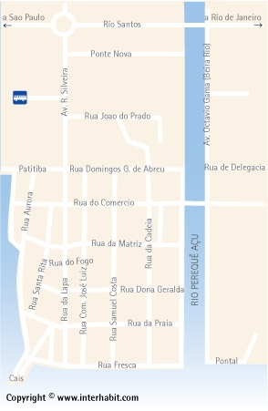 Chegando lá, básico dar uma volta pelo Centro Histórico. Saindo da Pousada Morro do Forte, em uma caminhada curta já se chega à Ponte sobre o Rio Perequê-Açu (note que agora já sei o nome do rio). Atravessando a ponte, já estamos na Rua do Comércio, coração do centro histórico:
