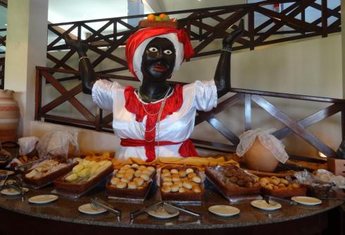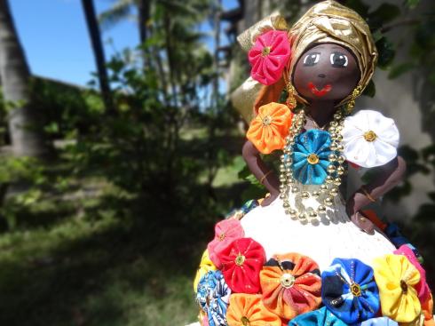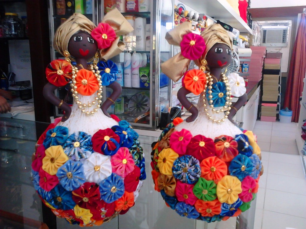 – No lobby há uma lojinha de souvenires, moda praia e outros itens de utilidade. Encontramos umas baianinhas artesanais, feitas de cabaça e ornadas com fuxico… Umas gracinhas aos olhos… Nem tanto ao bolso: