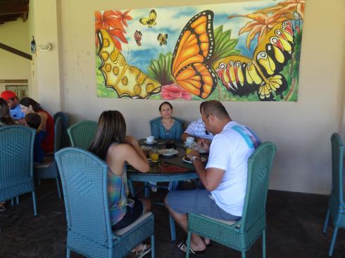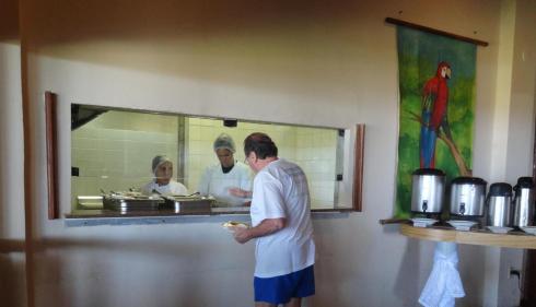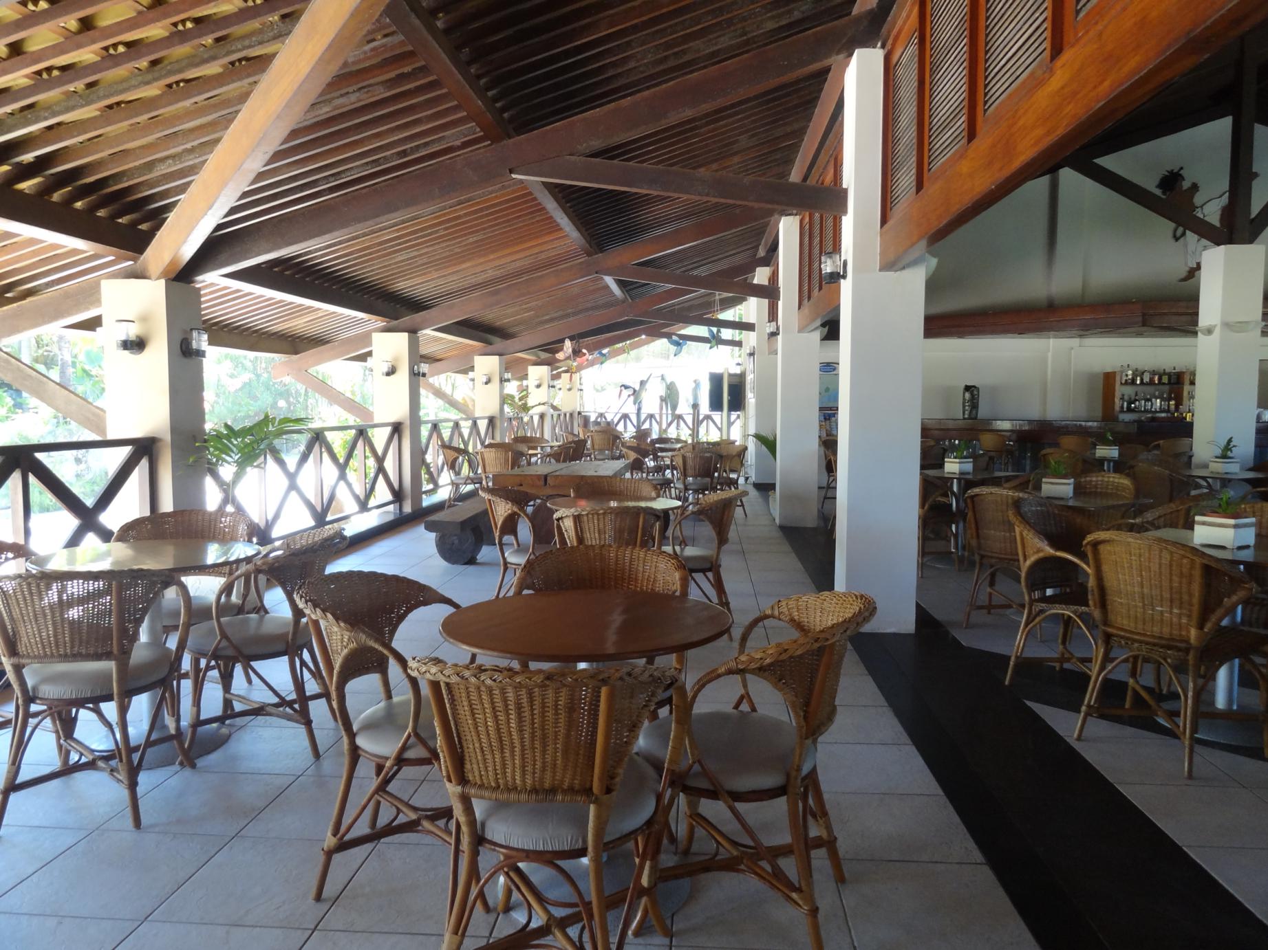 A diária inclui apenas o café da manhã, servido no agradável salão térreo, voltado para área da piscina: