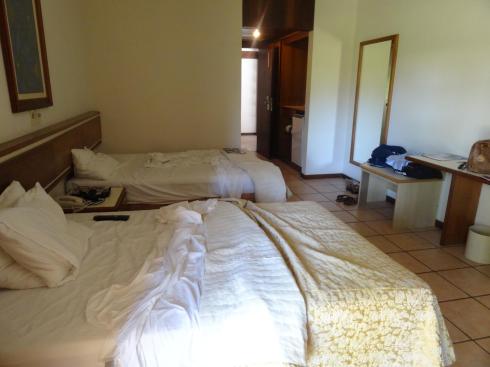 Nosso quarto triplo (eu, minha mãe e meu pai) contava com duas camas de casal, confortáveis, mas grandes para um solteiro e um pouco apertadas para um casal, mas nada que atrapalhe: