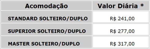 Então, #ficaadica: acerte por telefone ou feche com alguma agência (como fizemos), você pode conseguir um preço mais interessante. No próprio balcão hoje, ao fazer o check-out, solicitei informação sobre o valor do quarto duplo e eles me deram o valor de R$ 237,00 (quarto mais simples). Verifique também as formas de pagamento, pois, embora aceitem cartões, parece que não há muita facilidade para parcelamento.