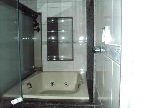 O banheiro também é satisfatório e conta com uma banheira, digamos, de “casal”:
