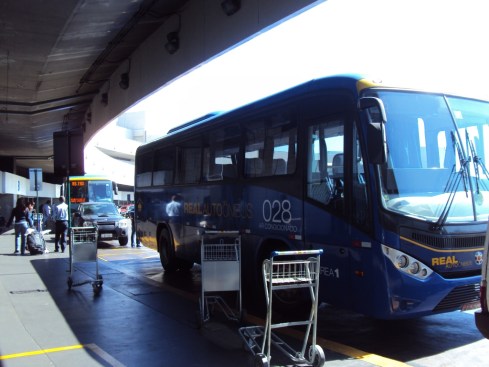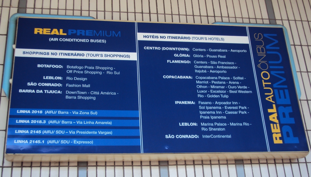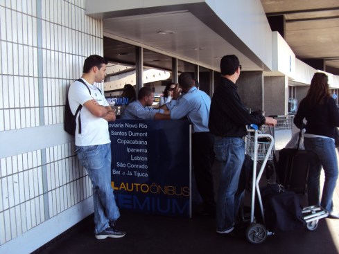 Chegamos no Rio às 11:20h e, para chegar ao Hotel, na Glória, pegamos o ônibus Real Premium. Não tem errada, saindo do desembarque e indo na direção da parada dos táxis, o ponto está à esquerda: