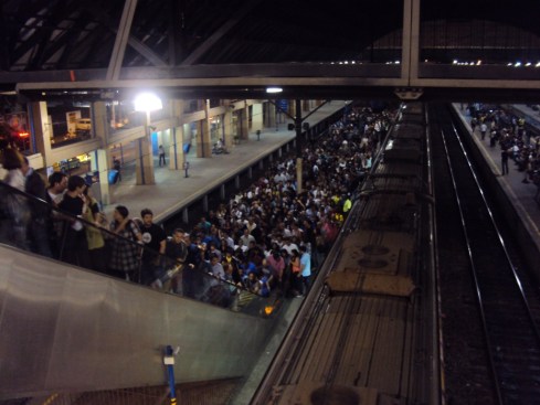Claro que o retorno foi uma mega muvuca. Praticamente um estádio inteiro se espremendo para entrar na estação, mas já estávamos preparados para isso e sabíamos que esta escolha de transporte não incluía conforto no pacote.