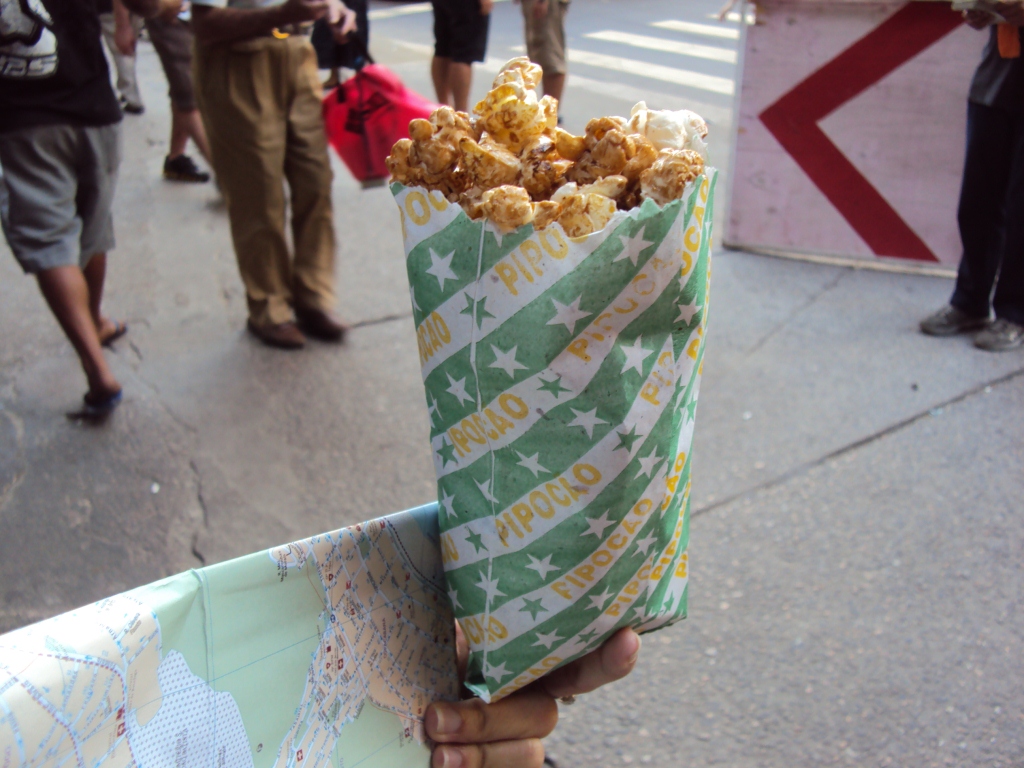 Mas, voltando à raiva da má escolha alimentar, ainda no caminho de volta até a Estação Siqueira Campos, acabei afogando minhas mágoas e minha fome em um saco (de R$ 2,00) de pipoca doce… Foi meu sustento até o dia seguinte ( já avisei que como pouco…kkkkkkkk).