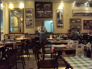 Para nos conquistar, o  garçom foi super simpático e atencioso… Mas só até aí. Depois que fizemos o pedido, ele sumiu e nos deixou desamparados. Fizemos dois pedidos e ele, por sua conta, decidiu que só deveria pedir o segundo, após termos comido o primeiro. Resultado: perdemos preciosos e mais preciosos minutos da nossa tarde (ficamos mais de uma hora esperando o segundo prato) com a cara pra cima, esperando a comida que não chegava nunca. Assim como a conta, que não chegava nuuuunca também.