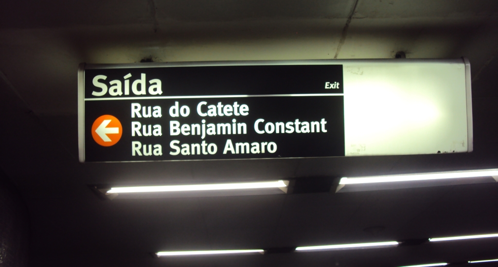 A escolha do hotel, além do preço, também se deu em razão da proximidade da estação de metrô da Glória (mapa do metrô aqui). Exatamente como o prometido, a estação fica bem próxima. Saindo da Rua Santo Amaro e virando à esquerda, basta andar alguns metros e logo se chega a um dos acessos da estação.