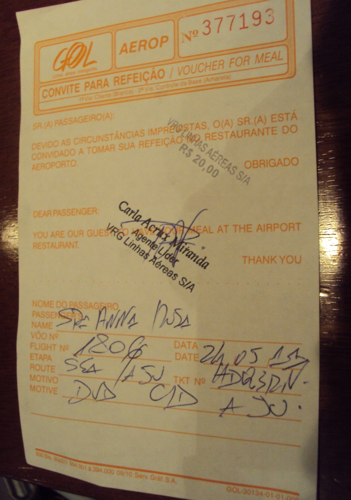 E, finalizando a saga #ShowdoPaul, tenho que relatar que, na volta, em Salvador, já arrasada, moída, triturada e passadinha na farinha de cansaço… rs rs rs… Embarcamos e… Após uns 40 minutos dentro do avião aguardando a liberação do voo para Aracaju, eis que o comandante da aeronave solicitou gentilmente que todos desembarcassem, pois o AEROPORTO de ARACAJU estava FECHADO em razão do mau tempo… E agora, São Infraero das Causas Aéreas? A Gol providenciou um ônibus para levar os interessados até o destino final. Resultado: deveria chegar em Aracaju às 14h. Chegamos às 21:30h. Mas, na espera pelo ônibus, rolou uma refeição paga pela empresa… Gostei, viu?  rs rs rs… Não vou mentir… Primeira vez que comi de graça nesse aeroporto…kkkkkkkkk… Escolhemos uma pizzaria show de bola!